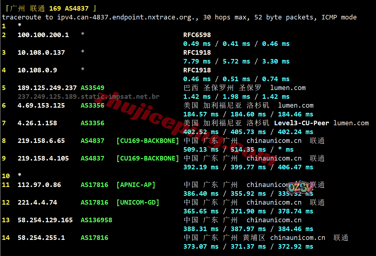 三网去程:都是先直连美国西海岸之后走国际线路去巴西,延迟挺高了;