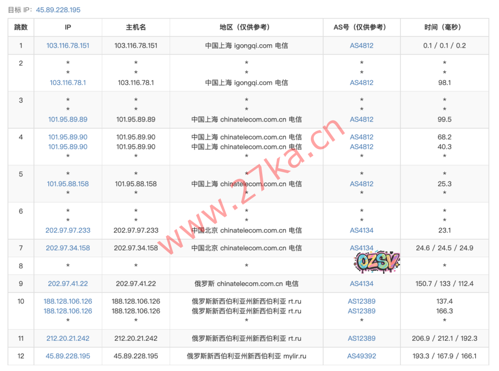 8  101.95.120.109  165.88 ms  AS4812  China, Shanghai, ChinaTelecom