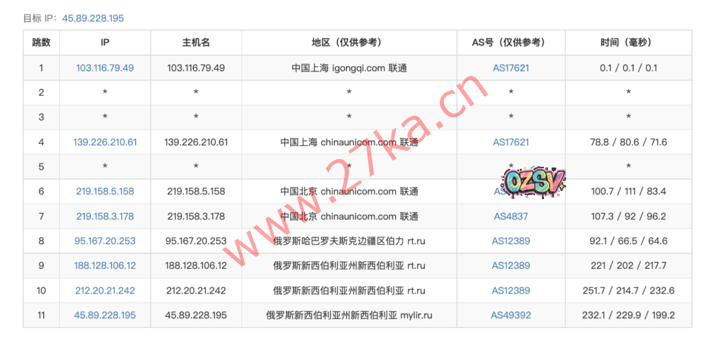 1  45.89.228.1  477.14 ms  AS49392  Russian Federation, Novosibirsk Oblast, Novosibirsk, mylir.ru