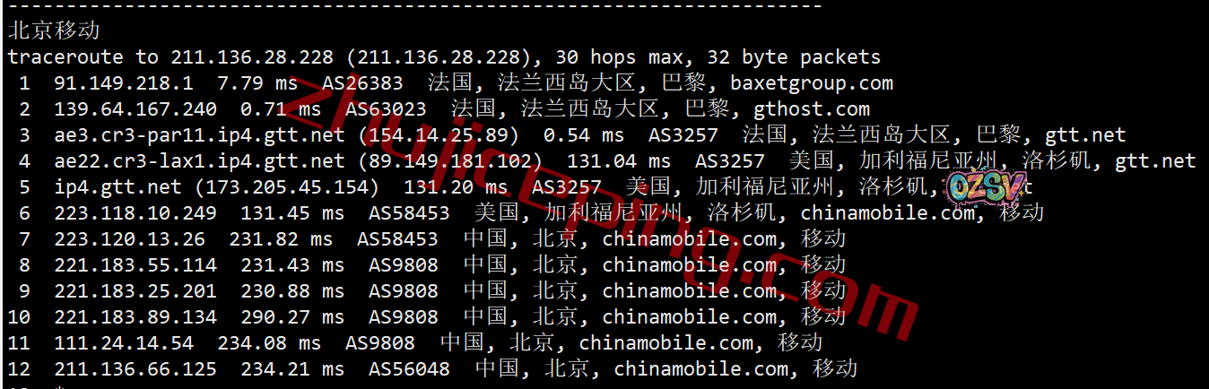 北京/广州方向:走GTT到洛杉矶,经过移动洛杉矶节点直接回国