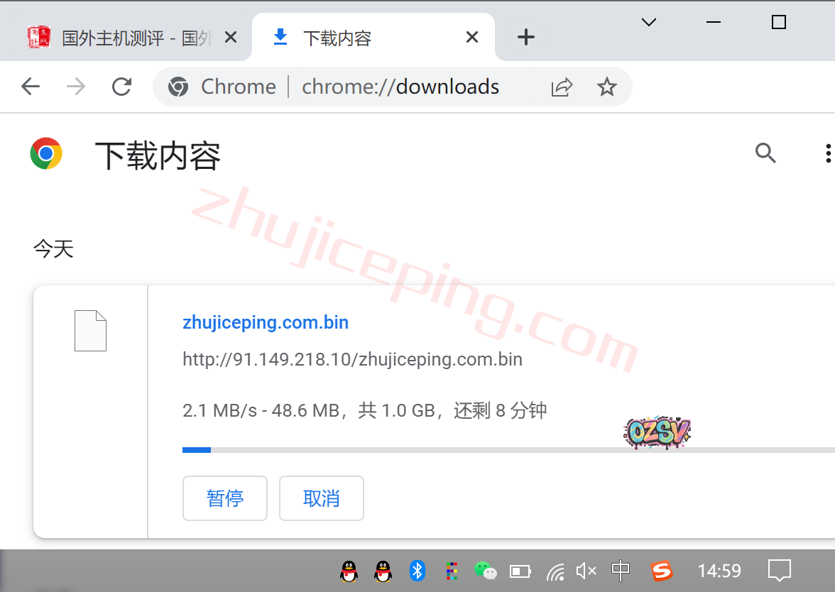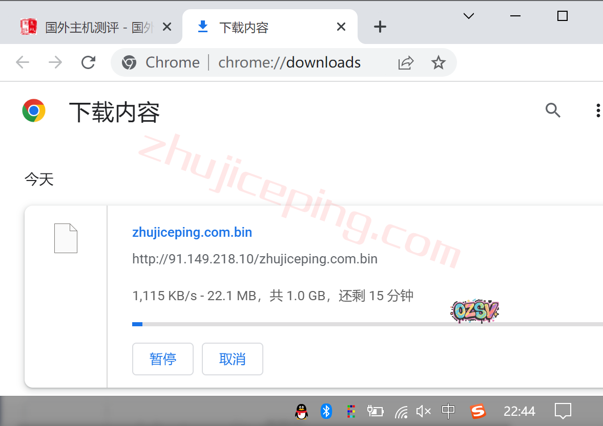 存放在测试小鸡上面的文件,广州电信,Chrome直接下载,看看速度: