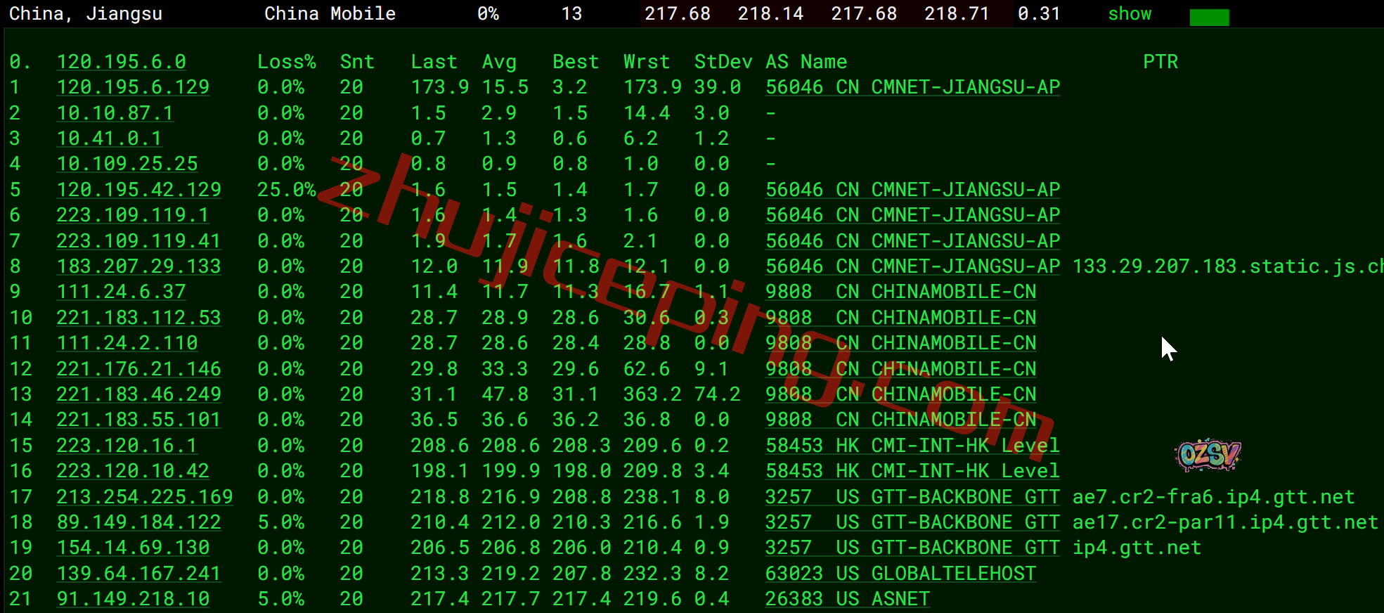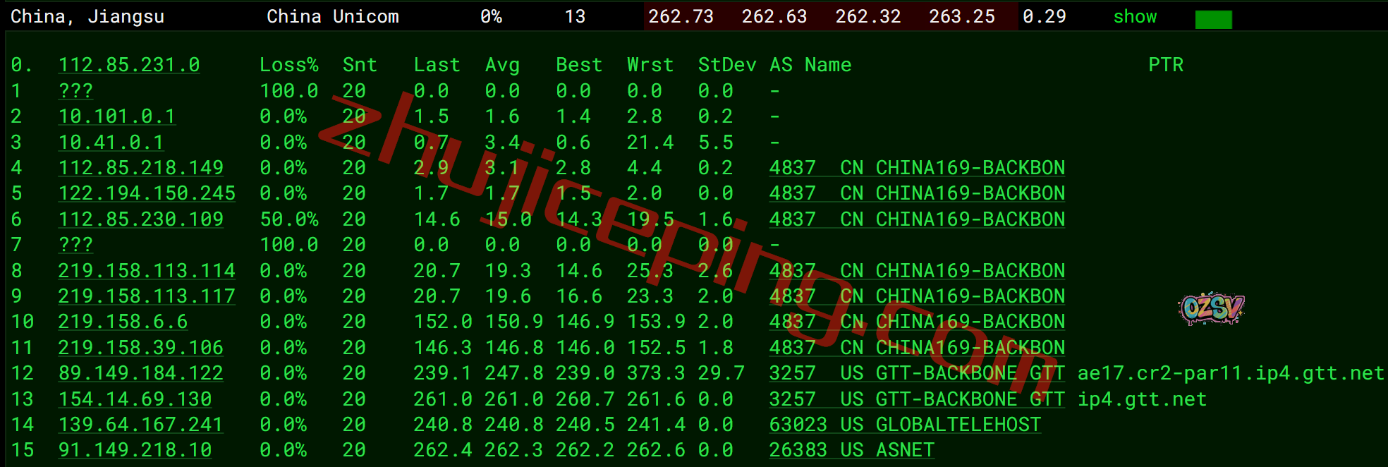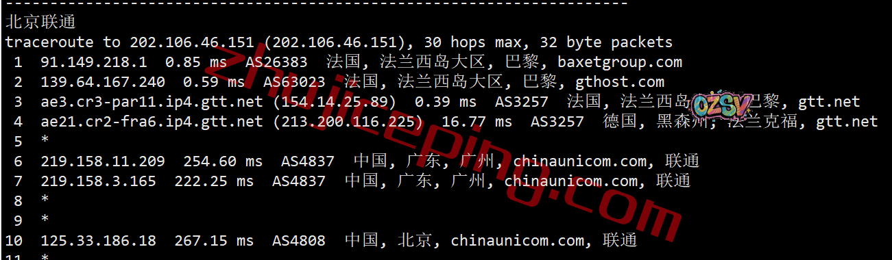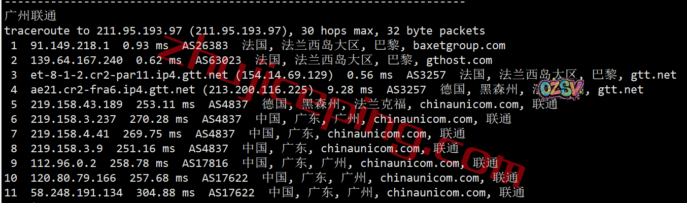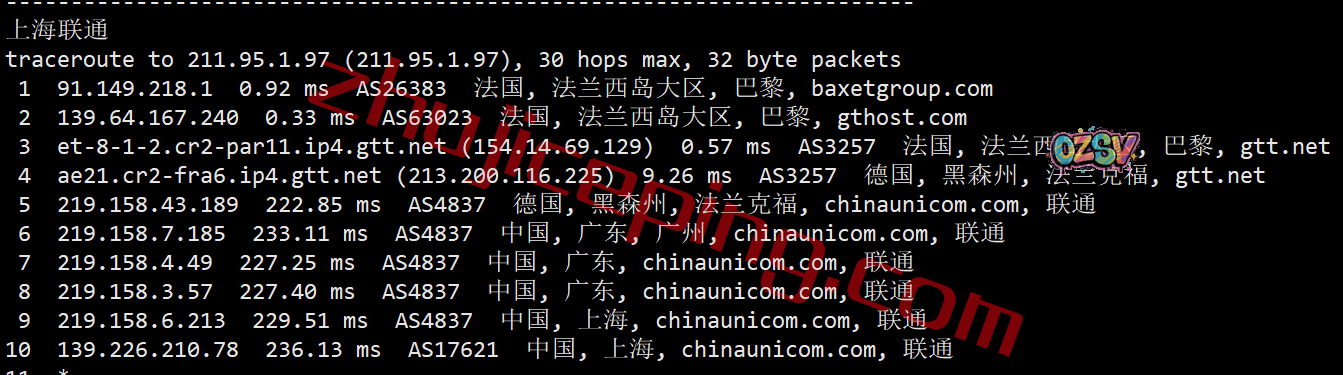 上海/广州方向:走GTT经过德国,从联通法兰克福节点直连回国