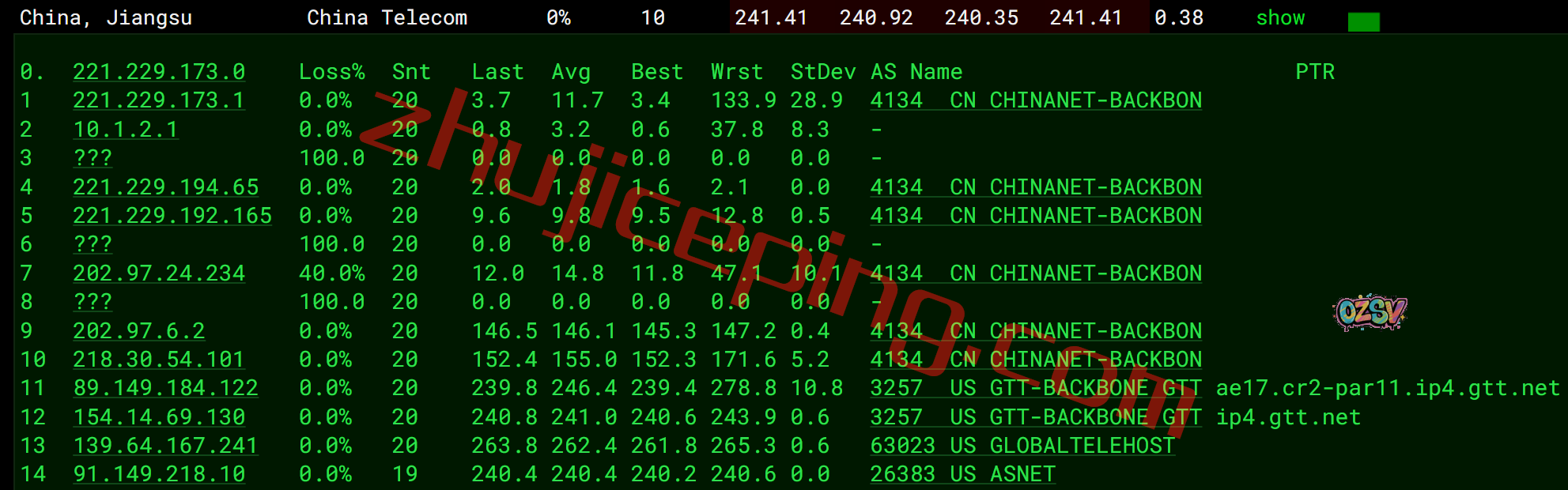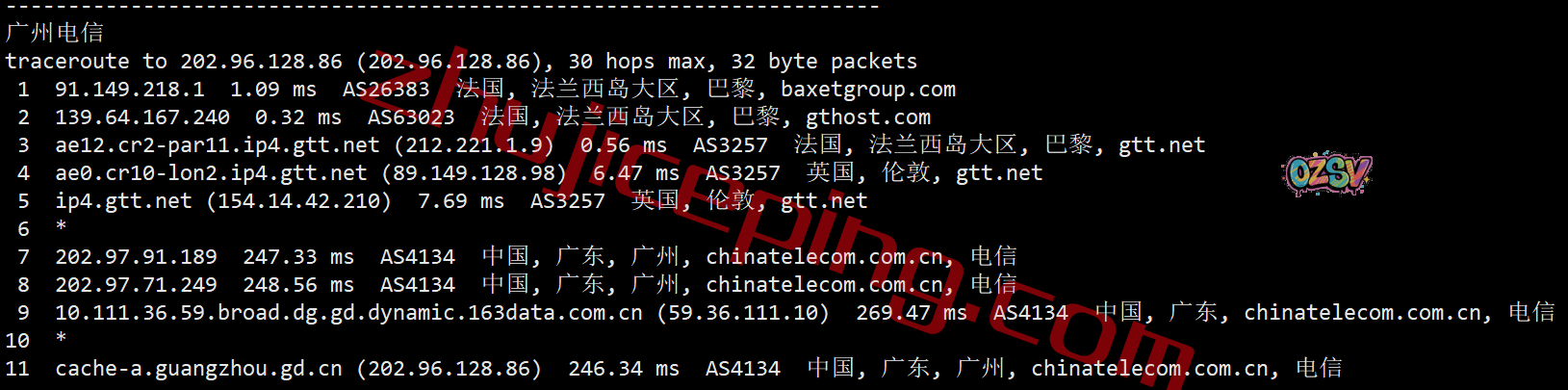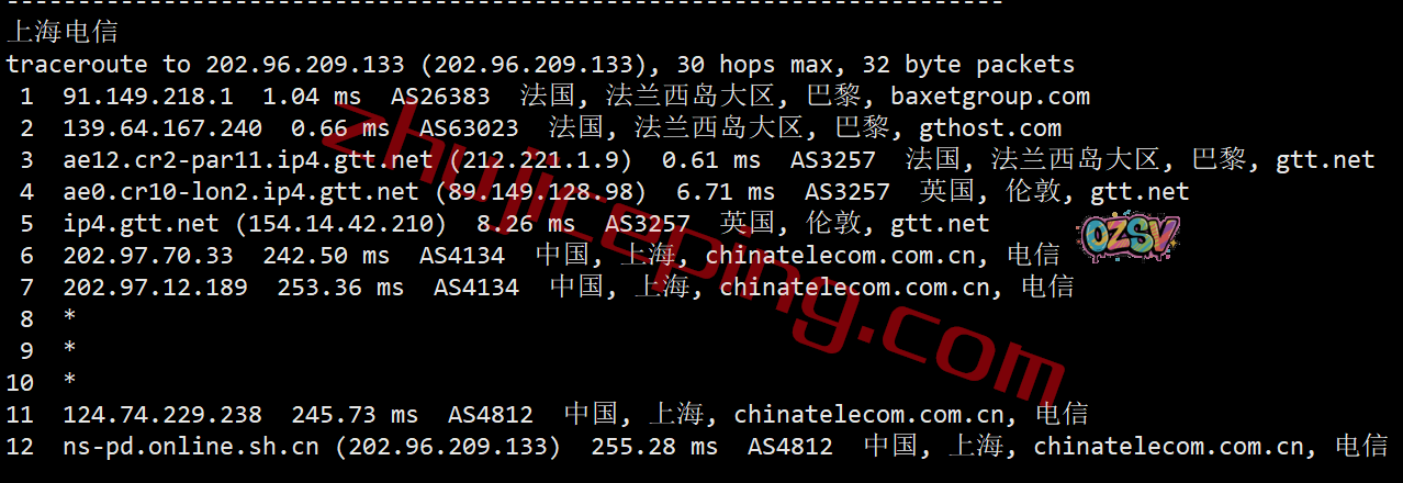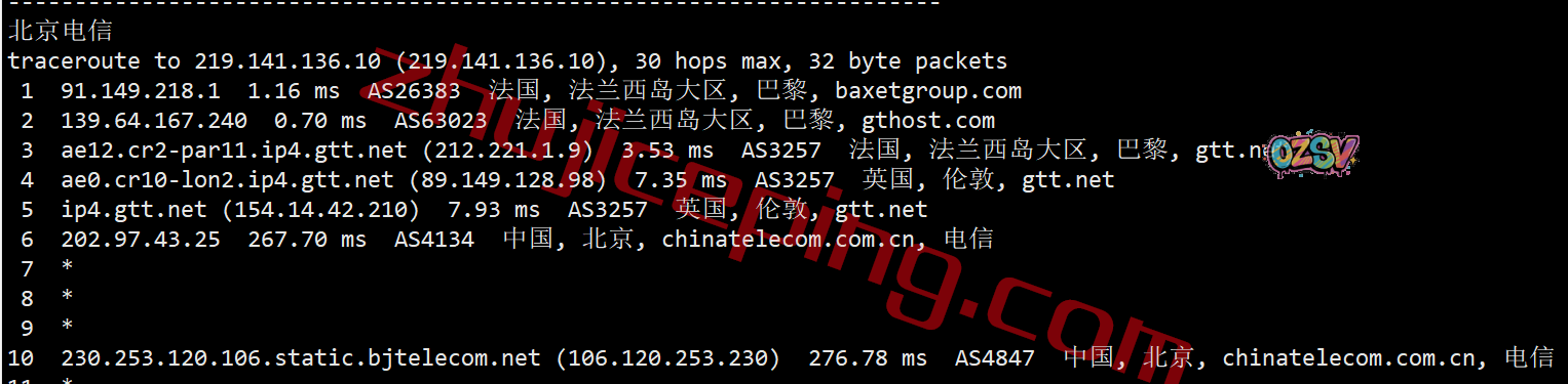 回程,到国内电信:走GTT到英国出口对接电信骨干