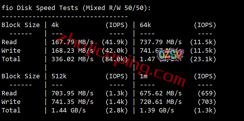 再次测试下硬盘的读写能力,看看FIO测试数据: