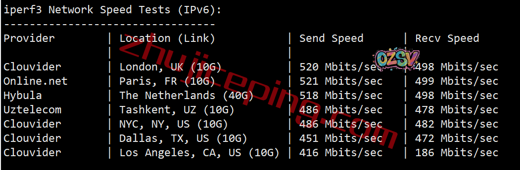 iperf3测试,只是切换到了IPV6网路下测试的: