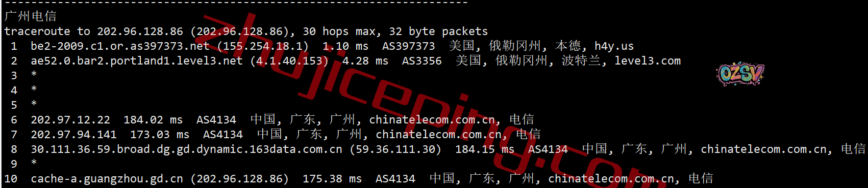 同样的测试怎么可能少了晚高峰,这会儿骨干网炸裂,我们对比下: