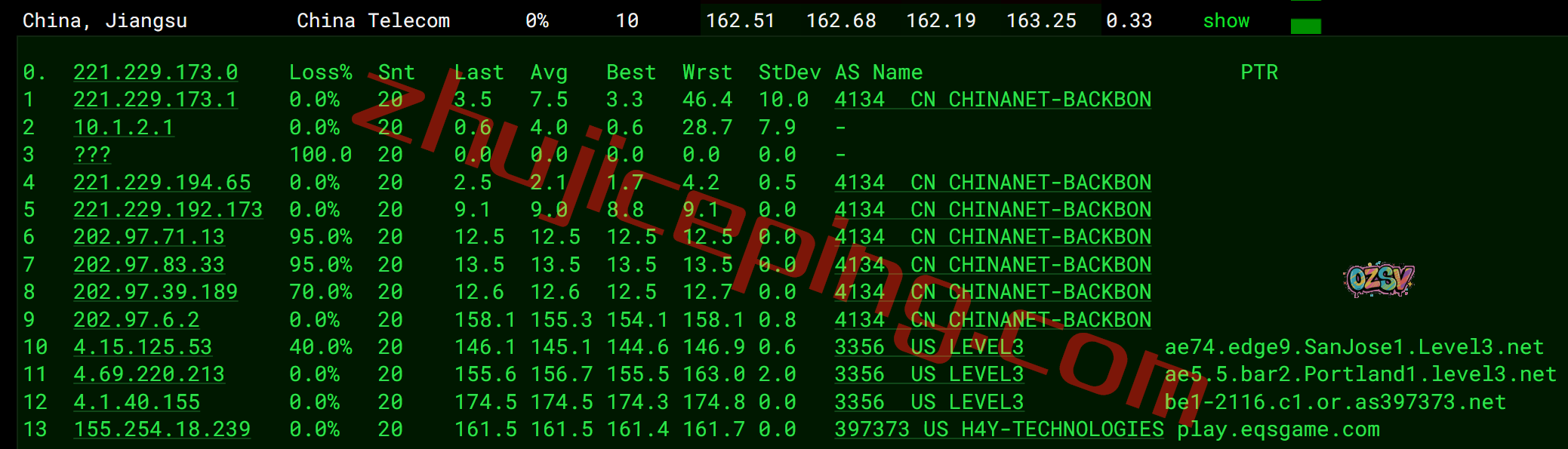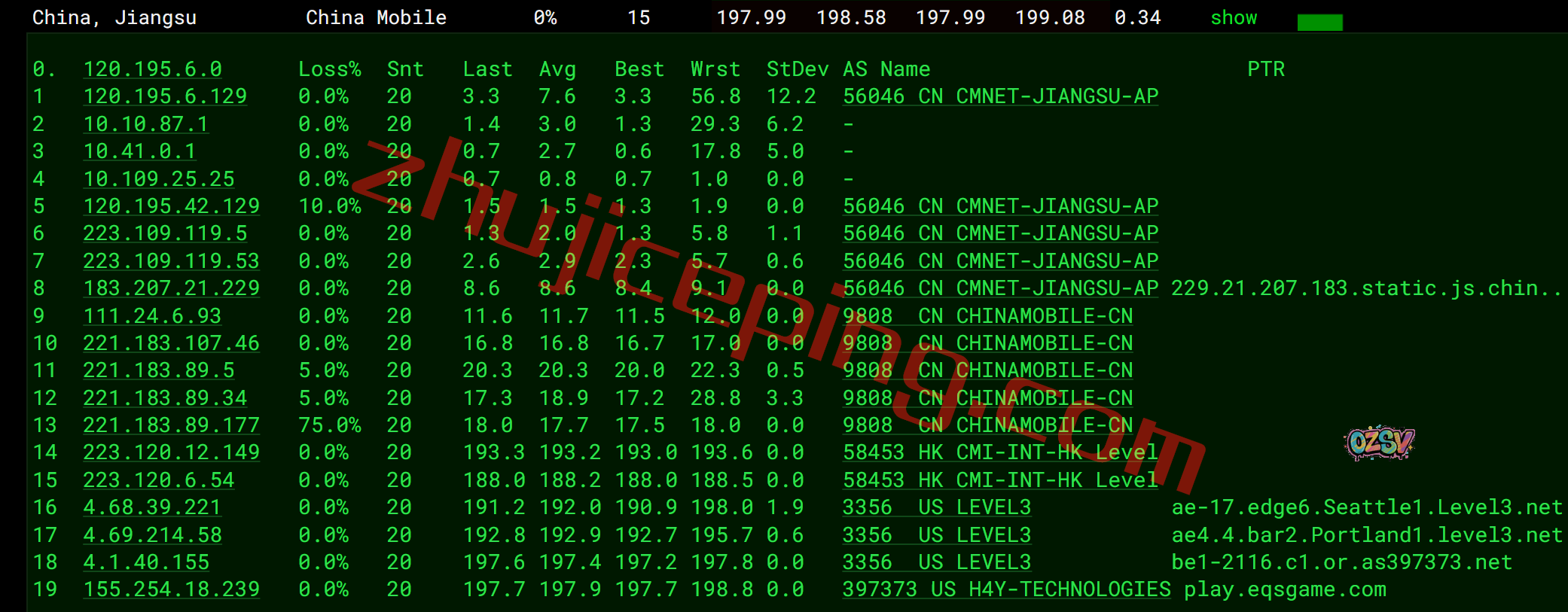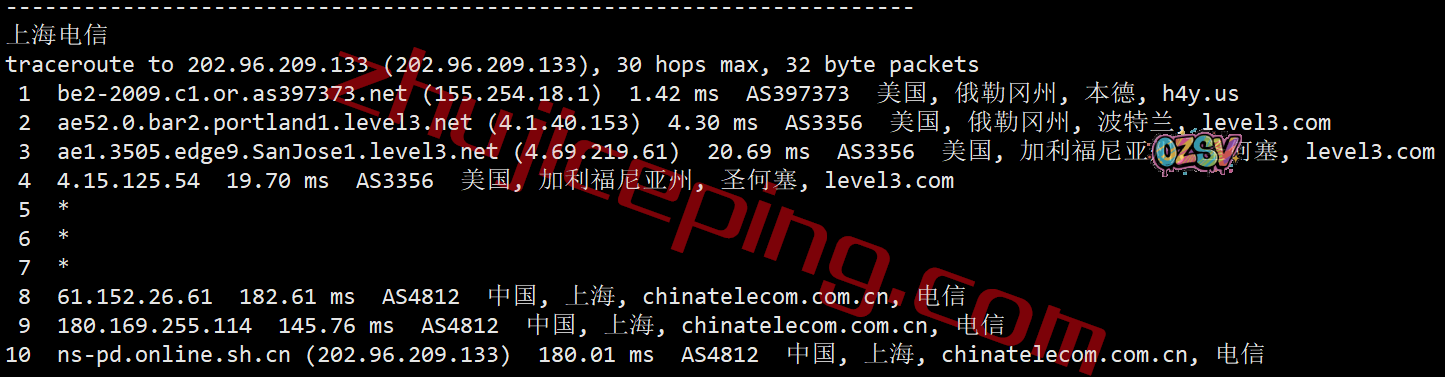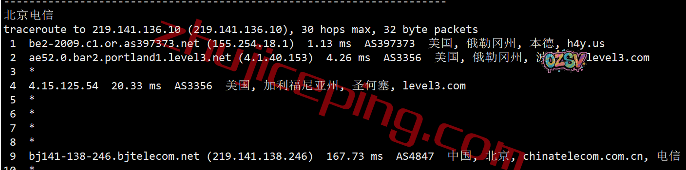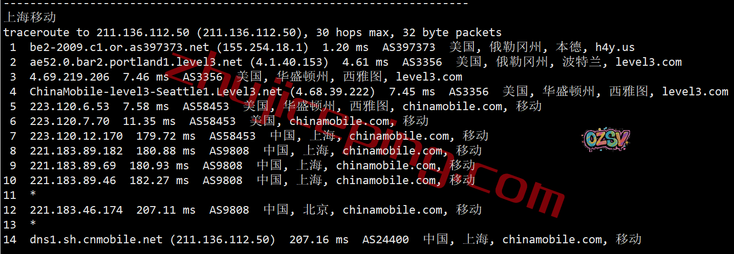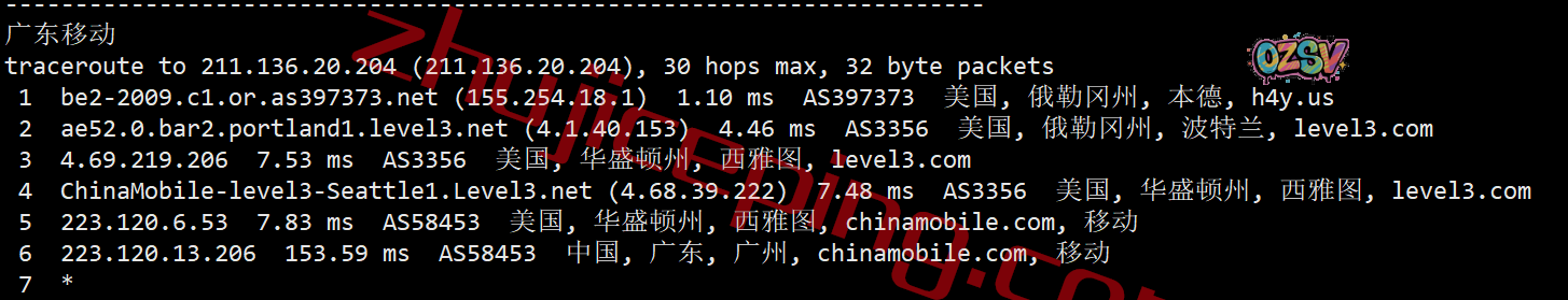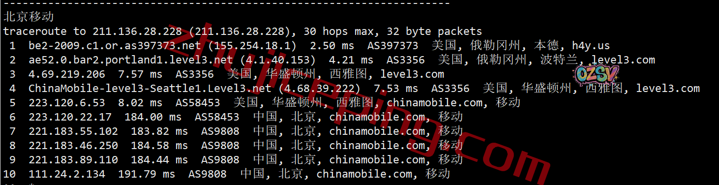 回程,到国内移动:走level3到西雅图,从移动在西雅图的节点直连回国