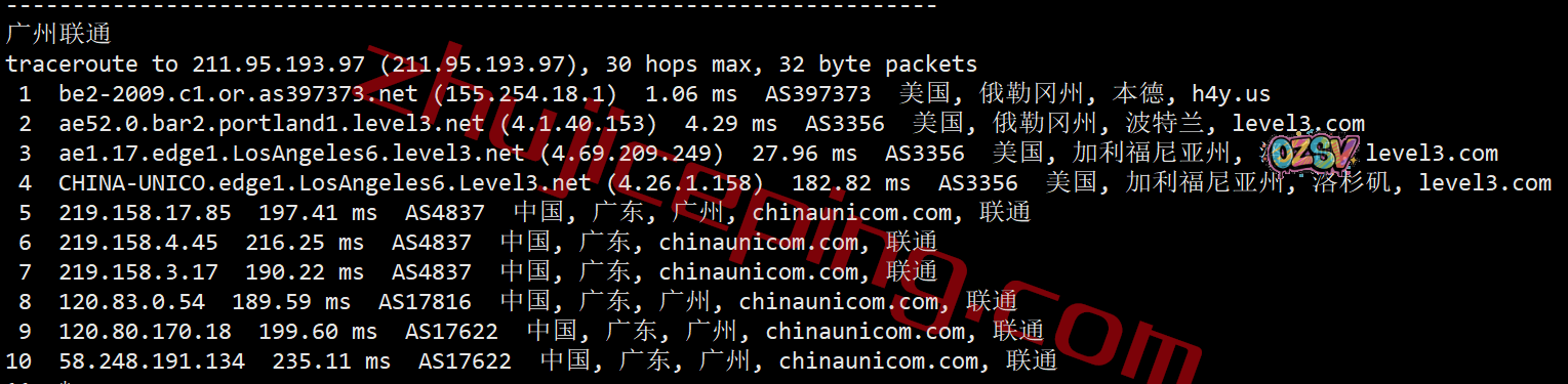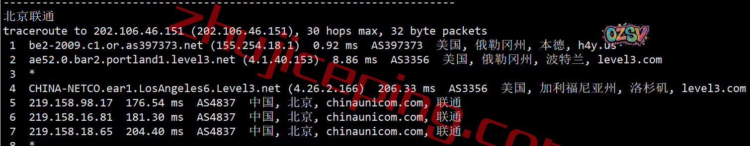 北京、广州方向:从联通和level3在洛杉矶的peer出来直连回国