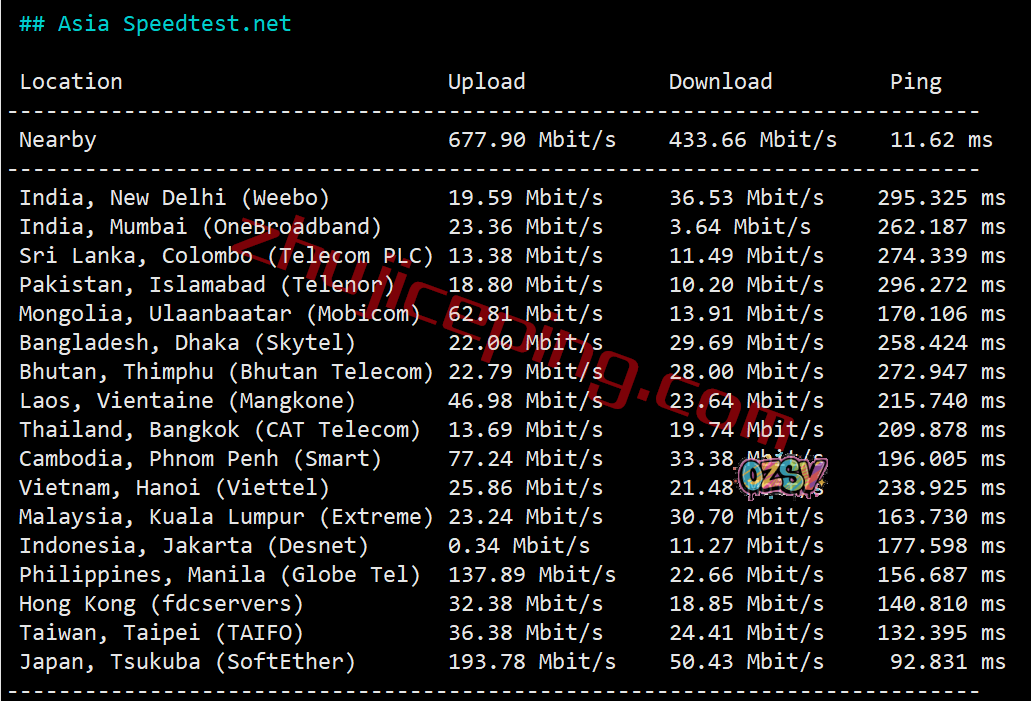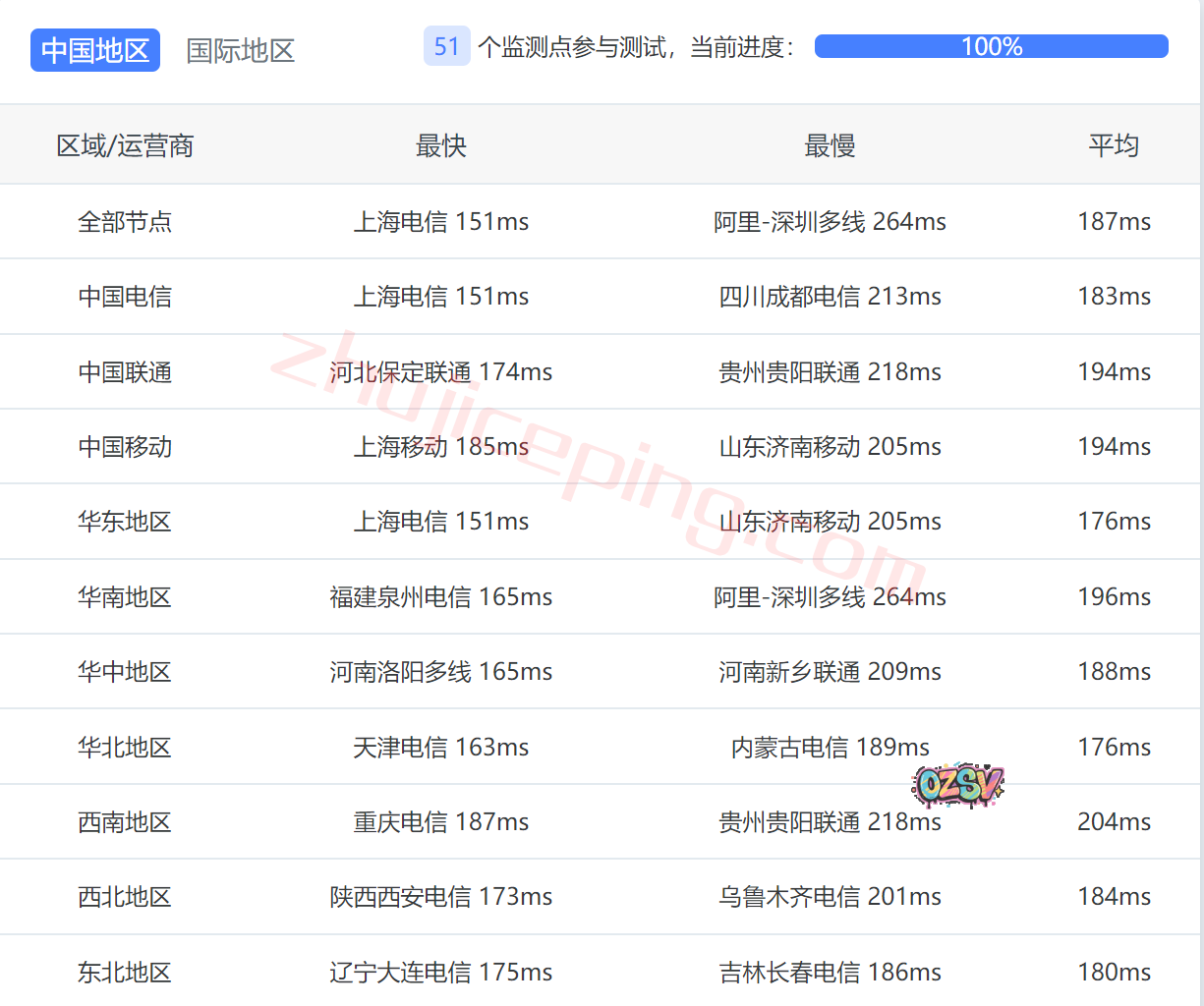 专门针对亚洲区域内的国家和地区,看看测试数据: