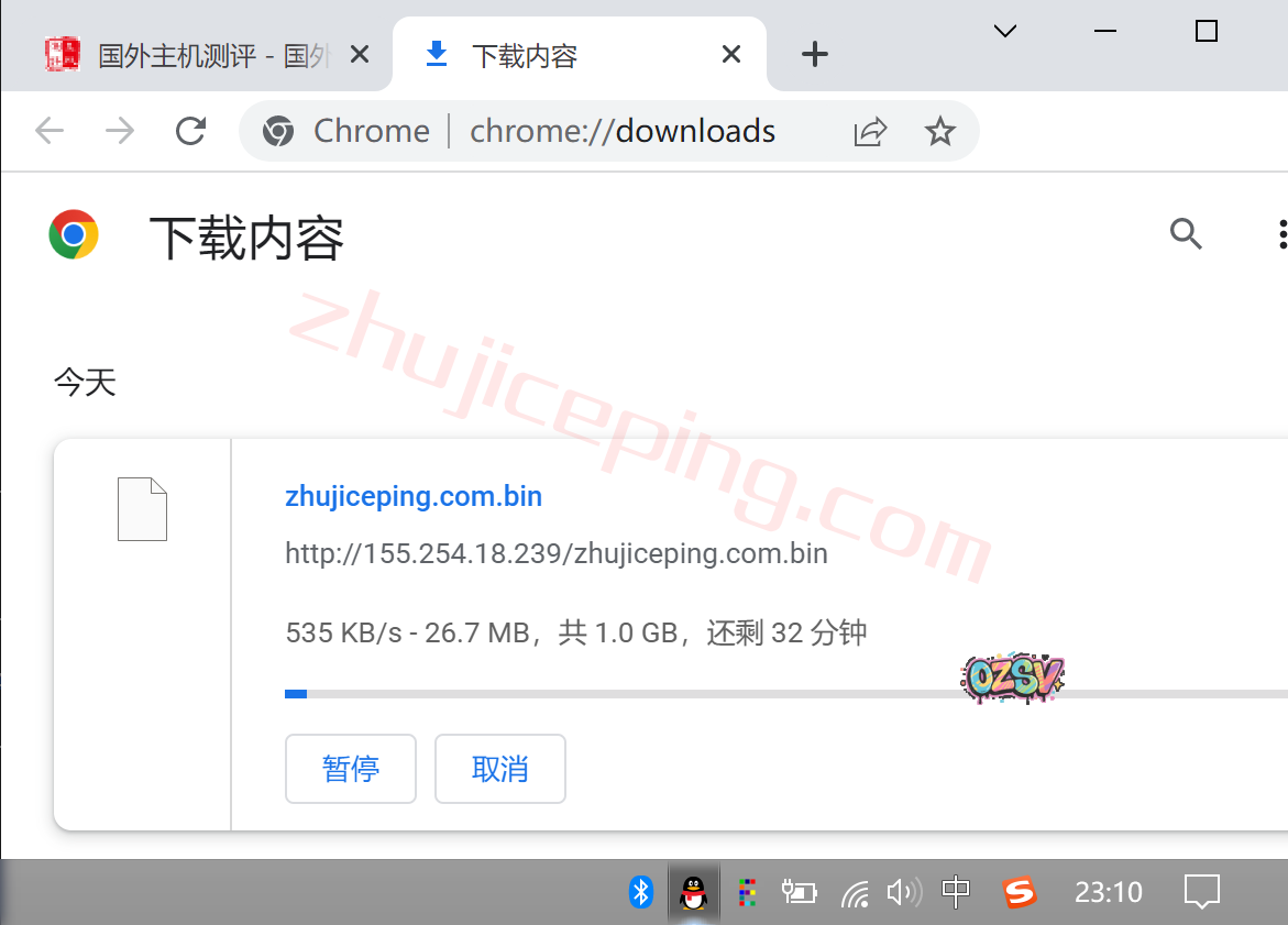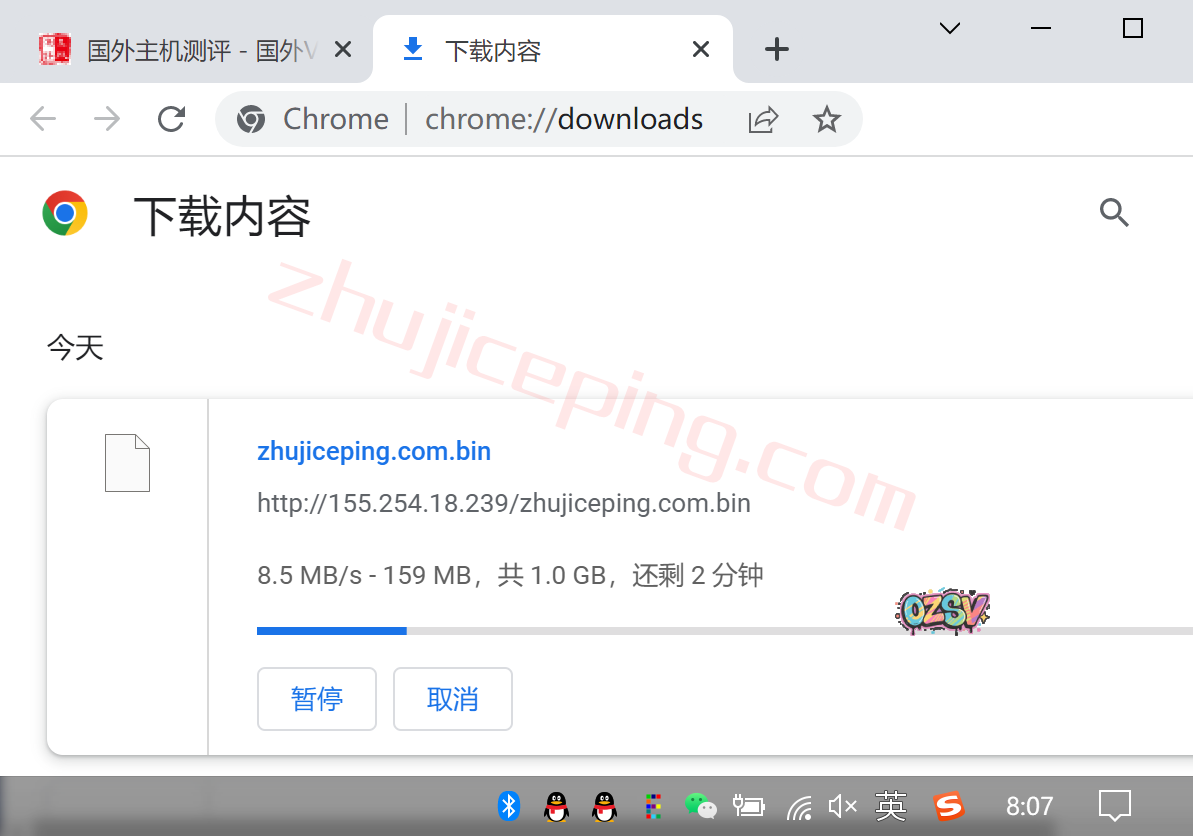 存放在测试小鸡上面的文件,广州电信直接Chrome下载,大致速度如下: