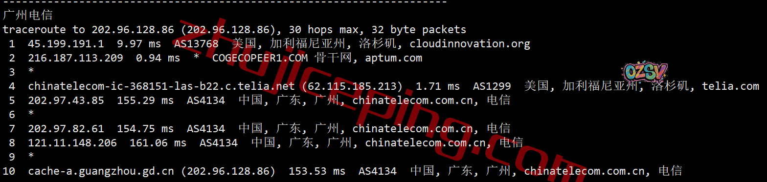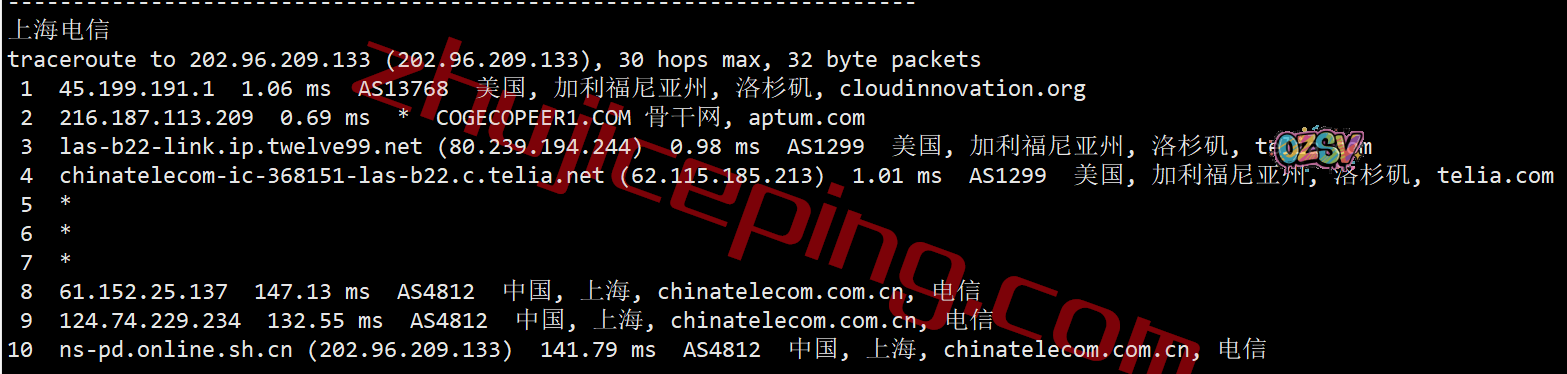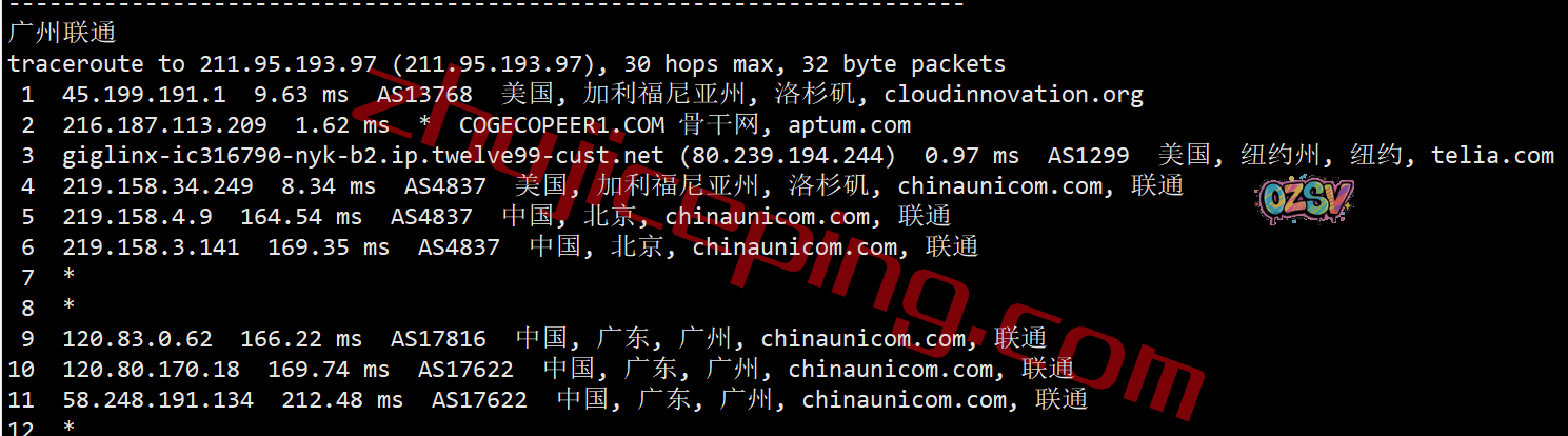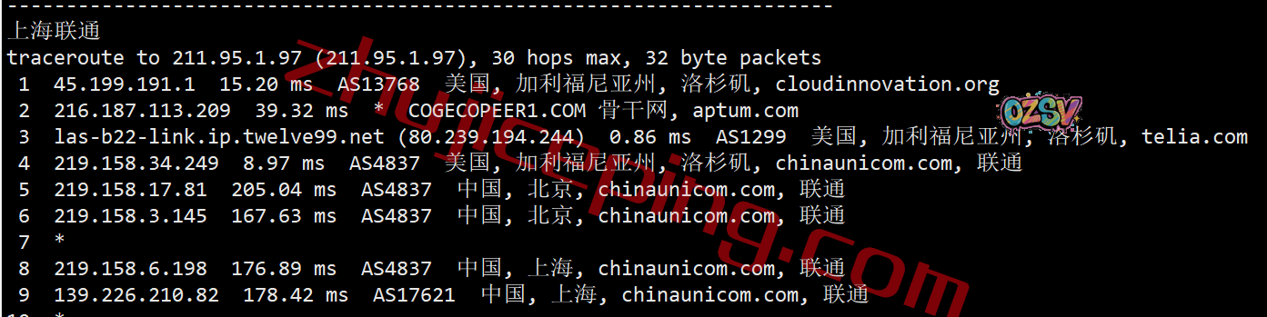 上海、广州方向:都是从联通在洛杉矶的节点直连回来