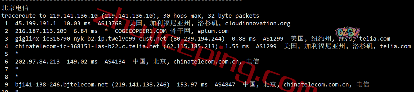 回程,到国内电信:从电信与telia在洛杉矶的peer出来直连国内