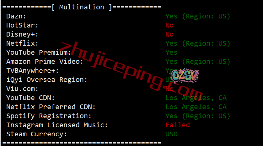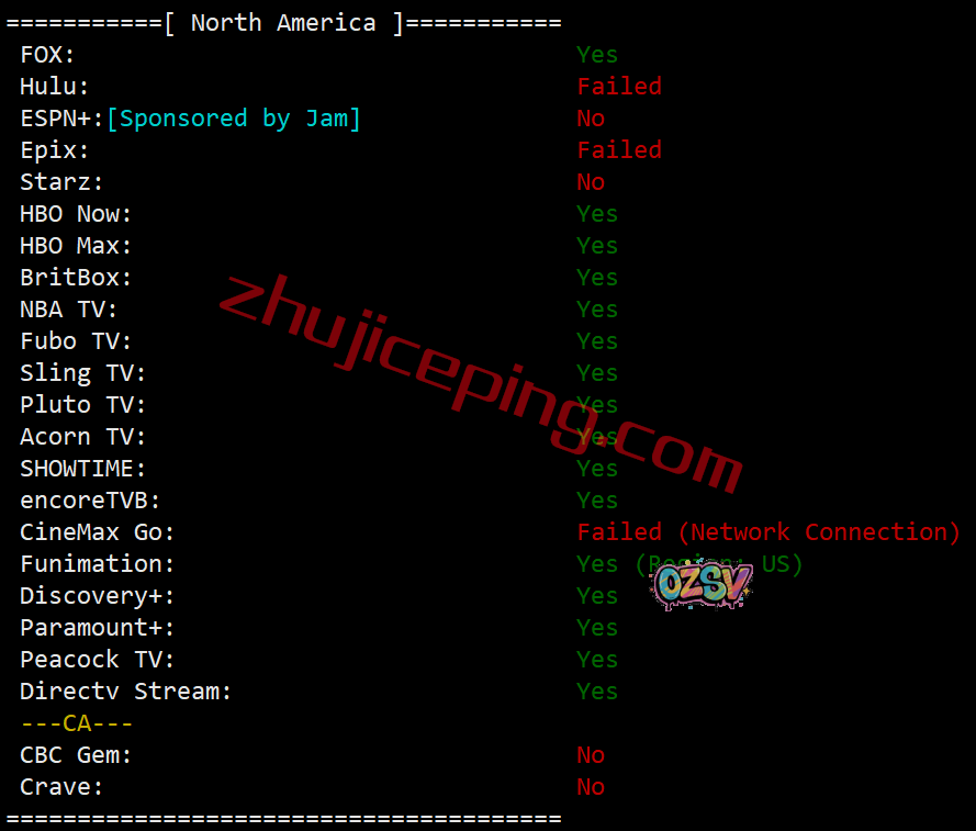 北美部分流媒体解锁测试结果: