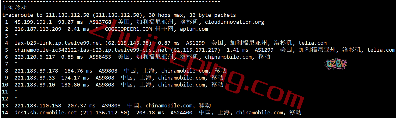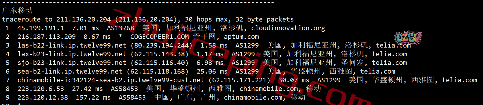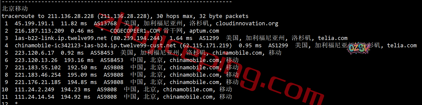 回程,到国内移动:从移动在洛杉矶或者西雅图的节点直连回国
