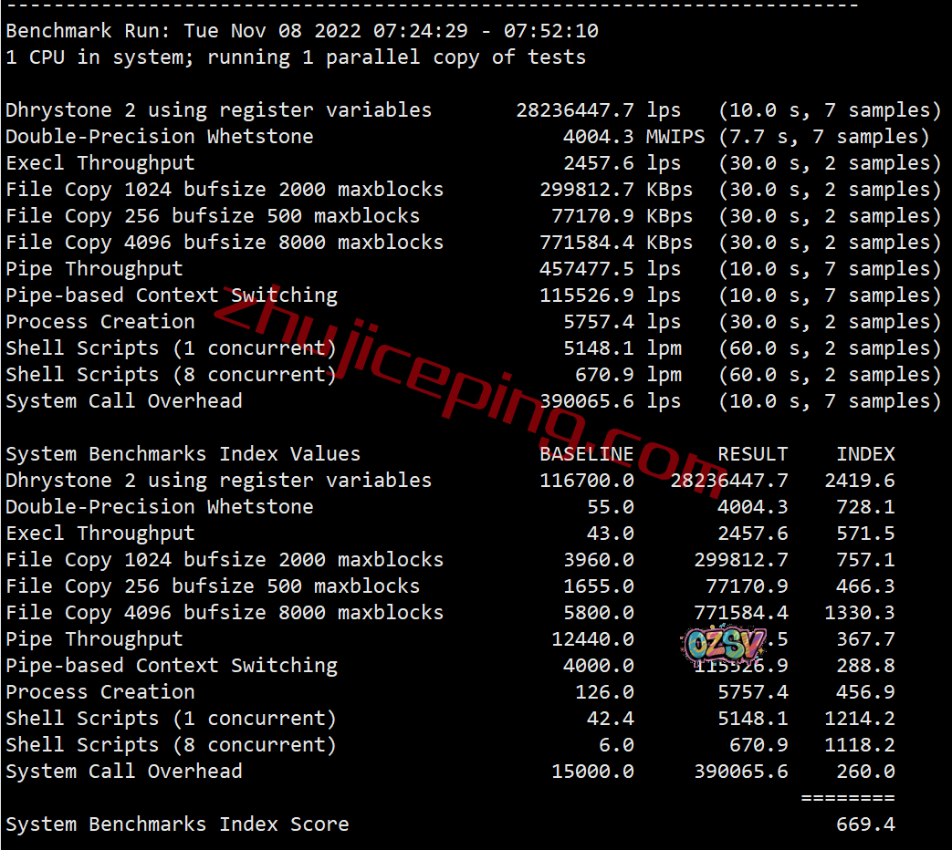服务器性能方面的测试,部分参数测试结果: