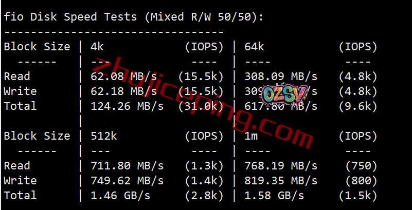 FIO再次测试一下硬盘的读写数据的情况:
