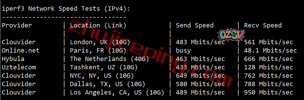 再看看iperf3跑欧美的几个知名节点: