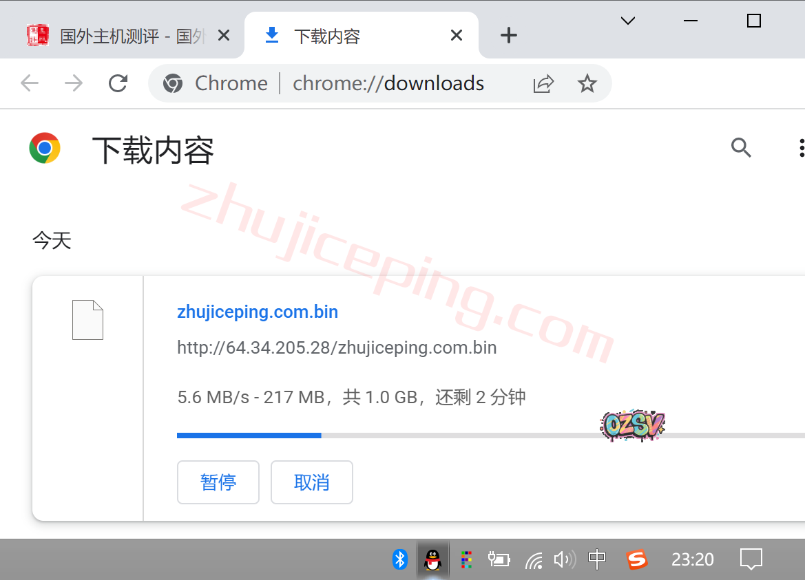 存放在测试小鸡上面的文件,广州电信直接用Chrome下载,大致的速度如下:
