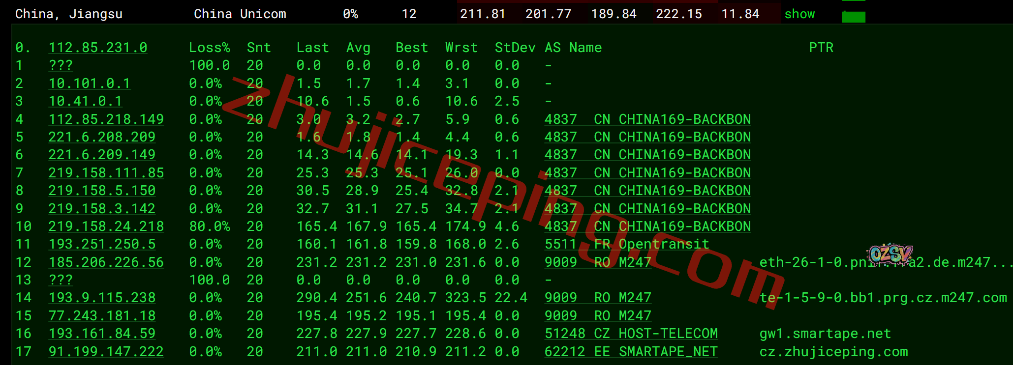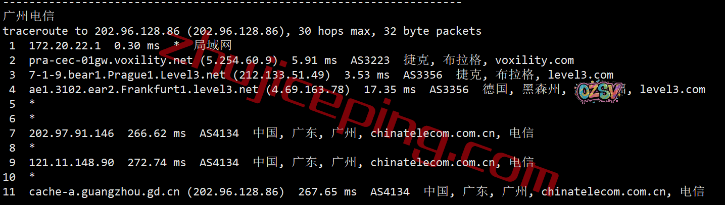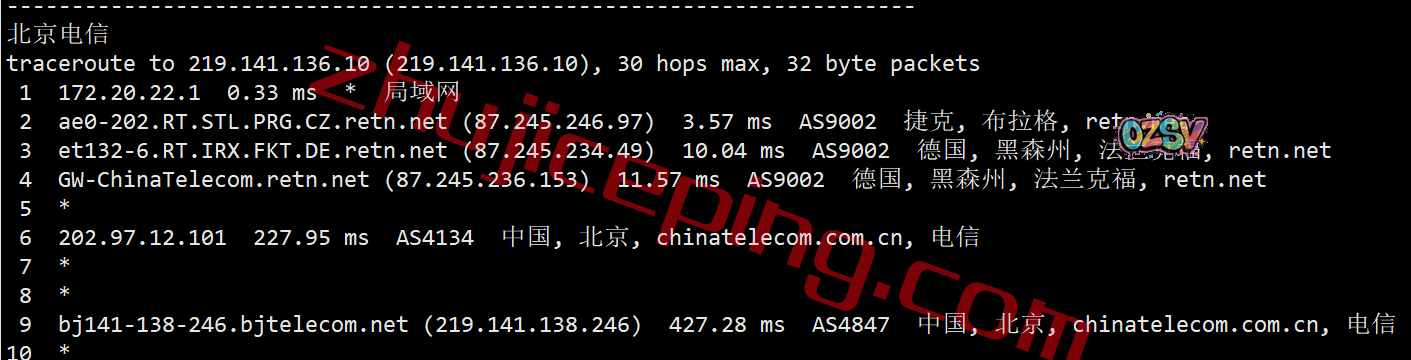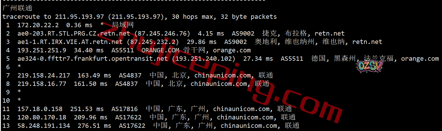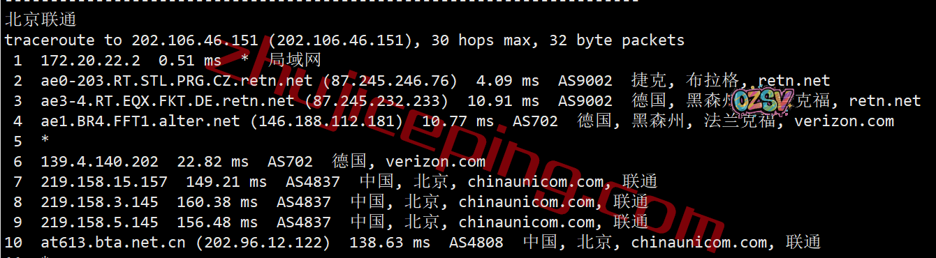 联通去程,直接骨干网到法国后去了捷克: