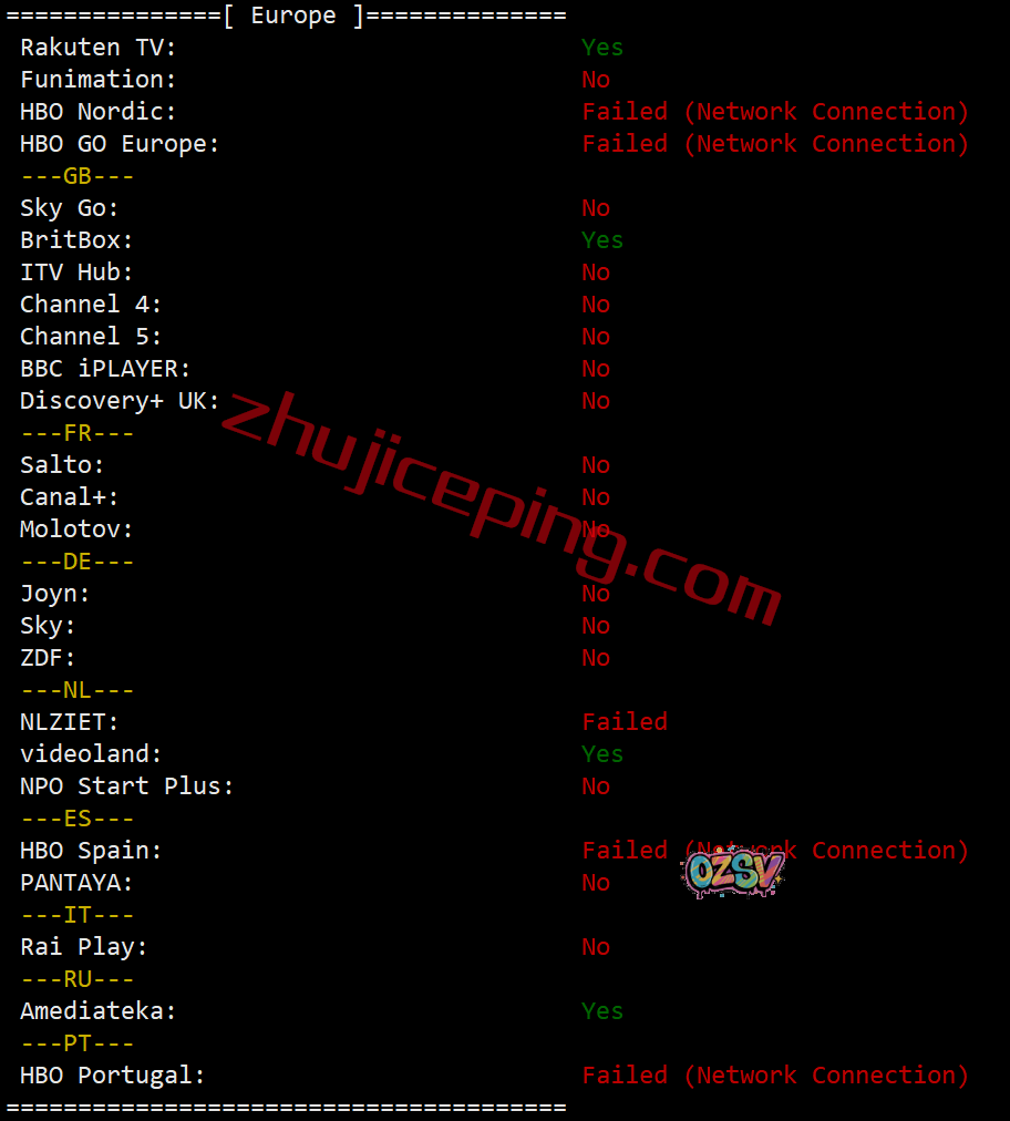 部分欧洲流媒体解锁测试结果:
