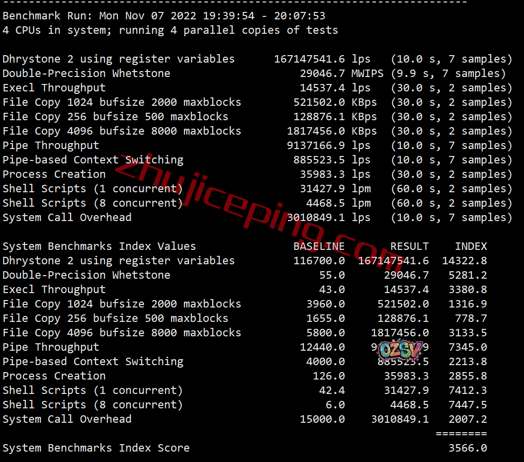 服务器性能测试,部分参数的测试结果如下: