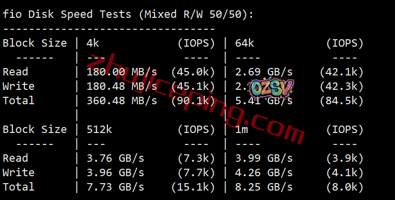 FIO大致再测试一下硬盘的数据读写情况: