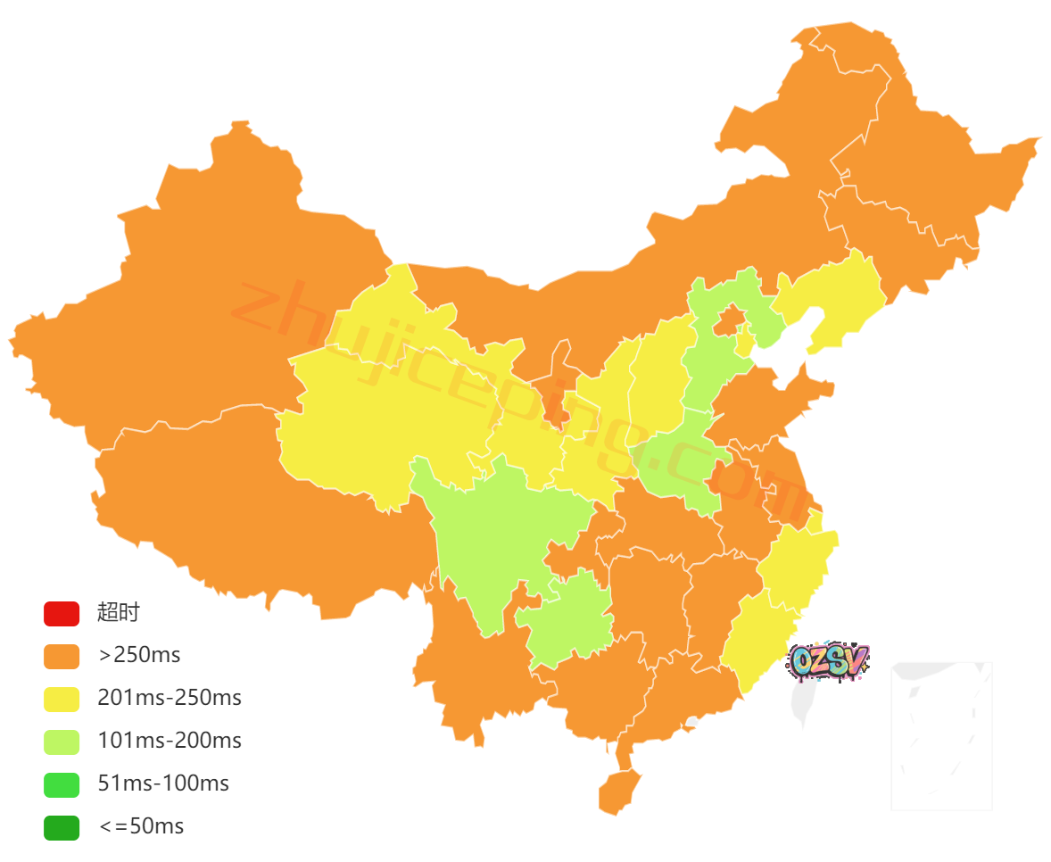 国内三网多节点延迟测试: