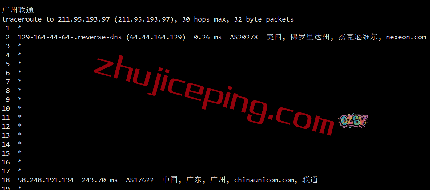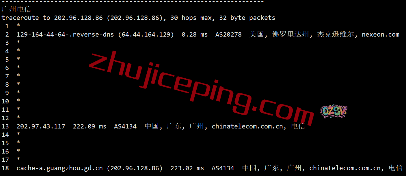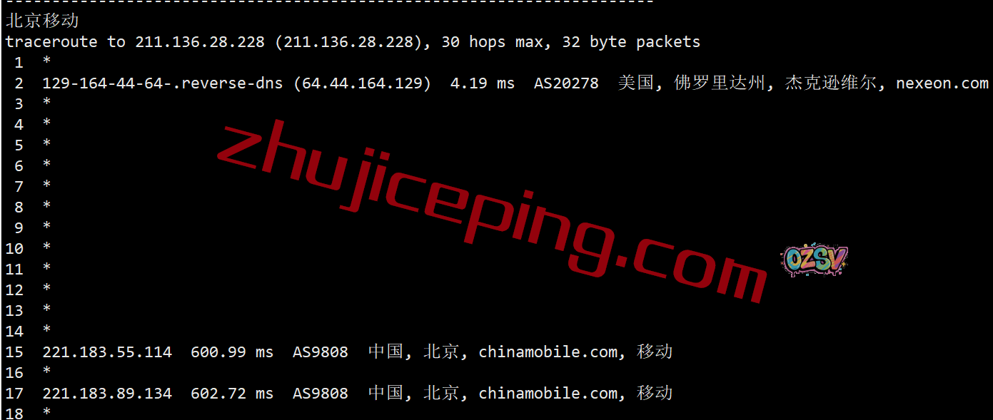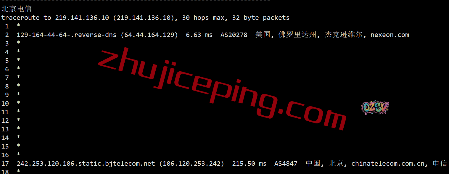 同上面一样的测试,只是时间是晚高峰期间,这会儿骨干网炸了: