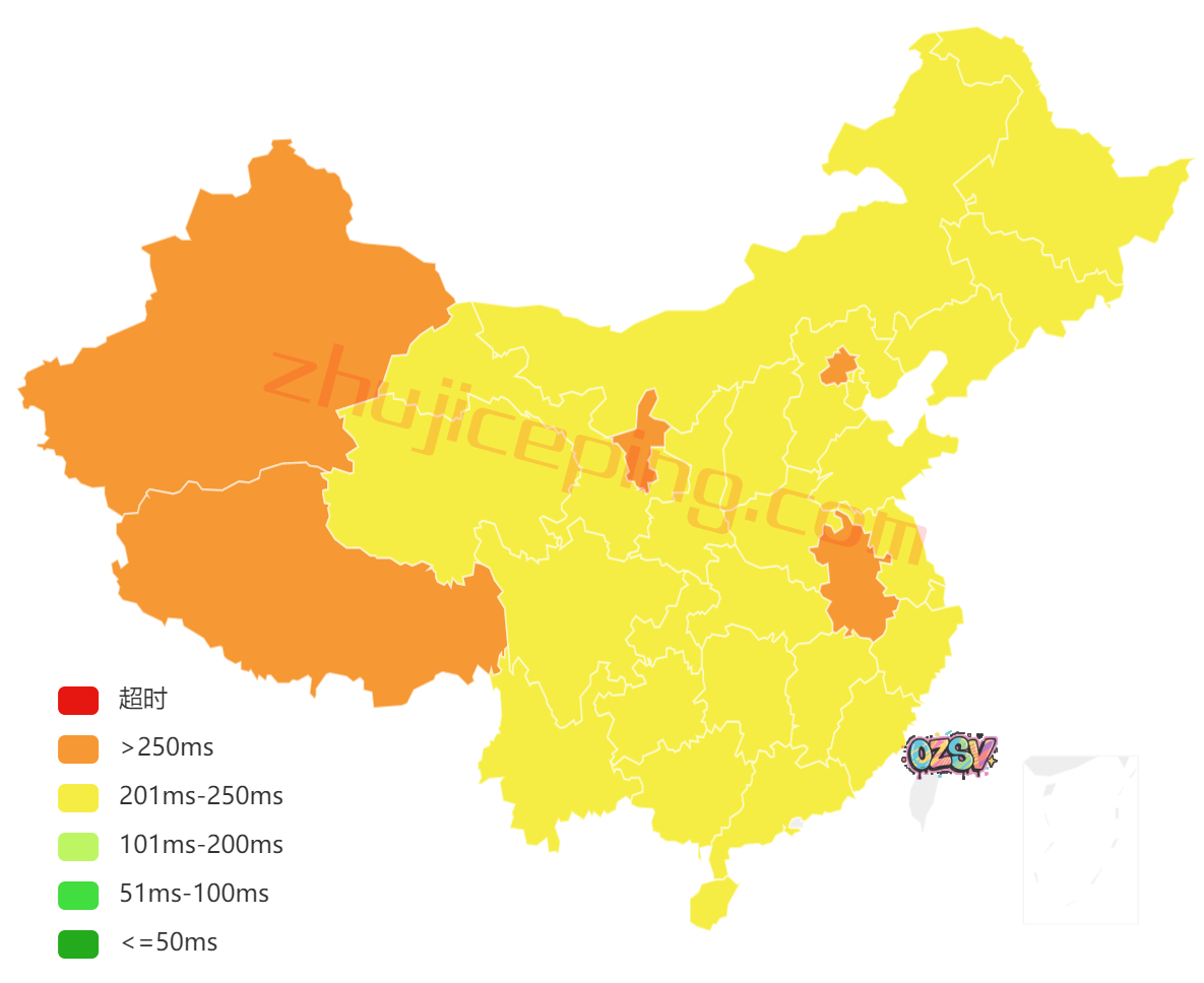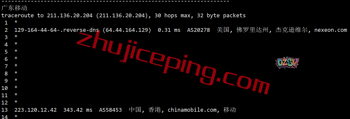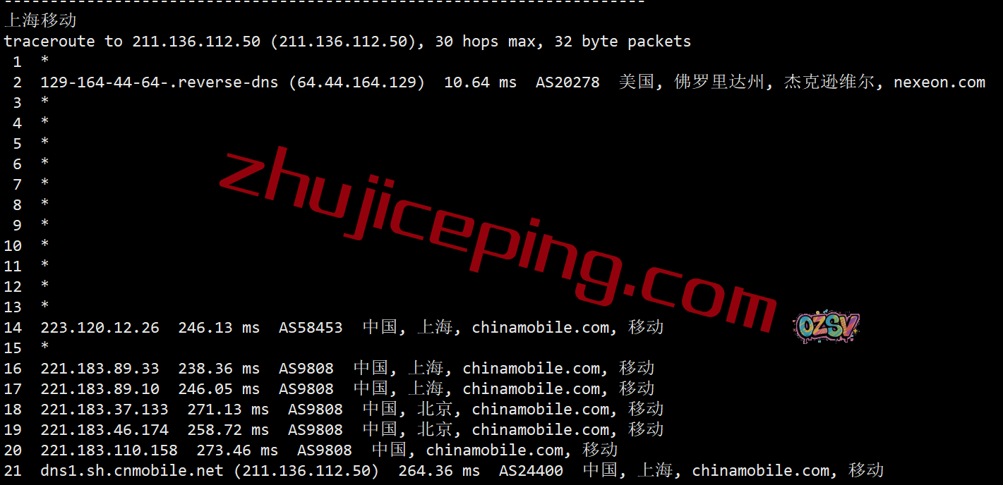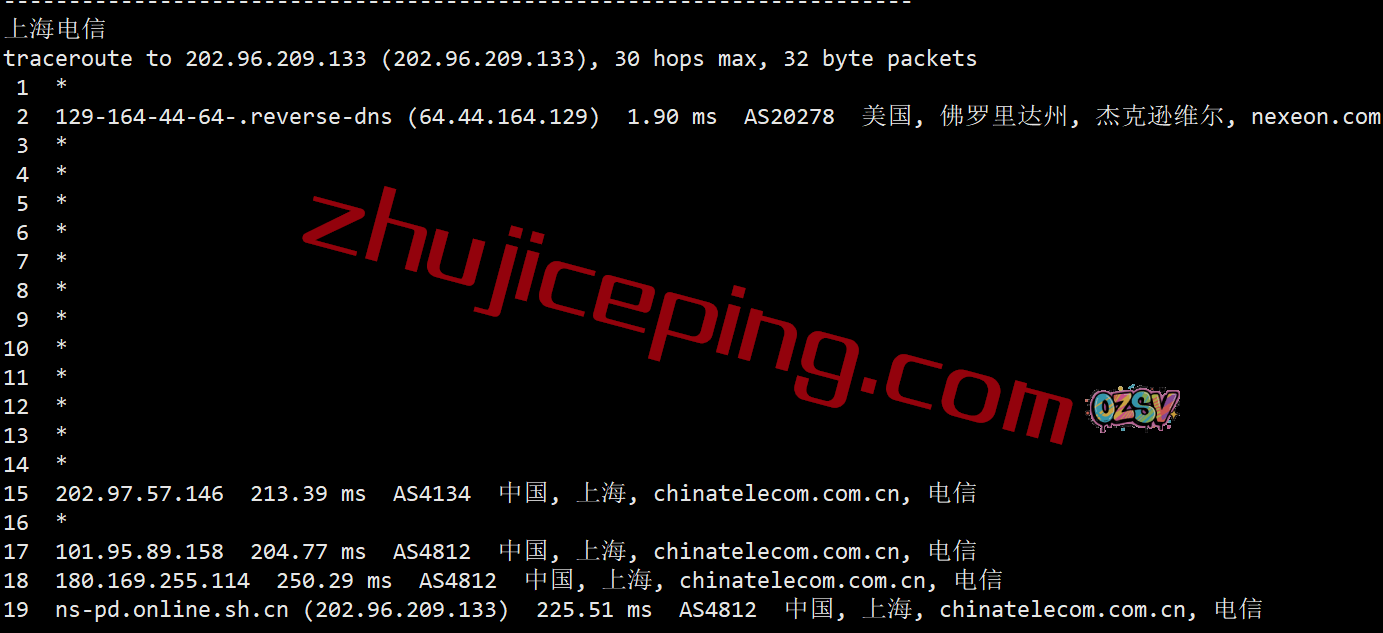 同上面一样的测试,只是时间是晚高峰期间,这会儿骨干网炸了: