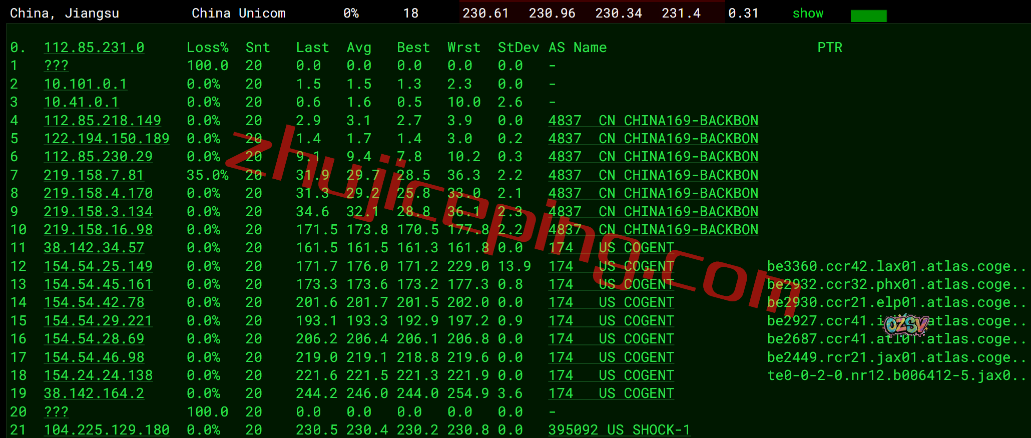 去程全部都是走的国际线路cogent,回程全部被屏蔽了看不到;可以解锁tiktok等部分流媒体,一定要玩的话可能国内联通的效果要比电信和移动要好。