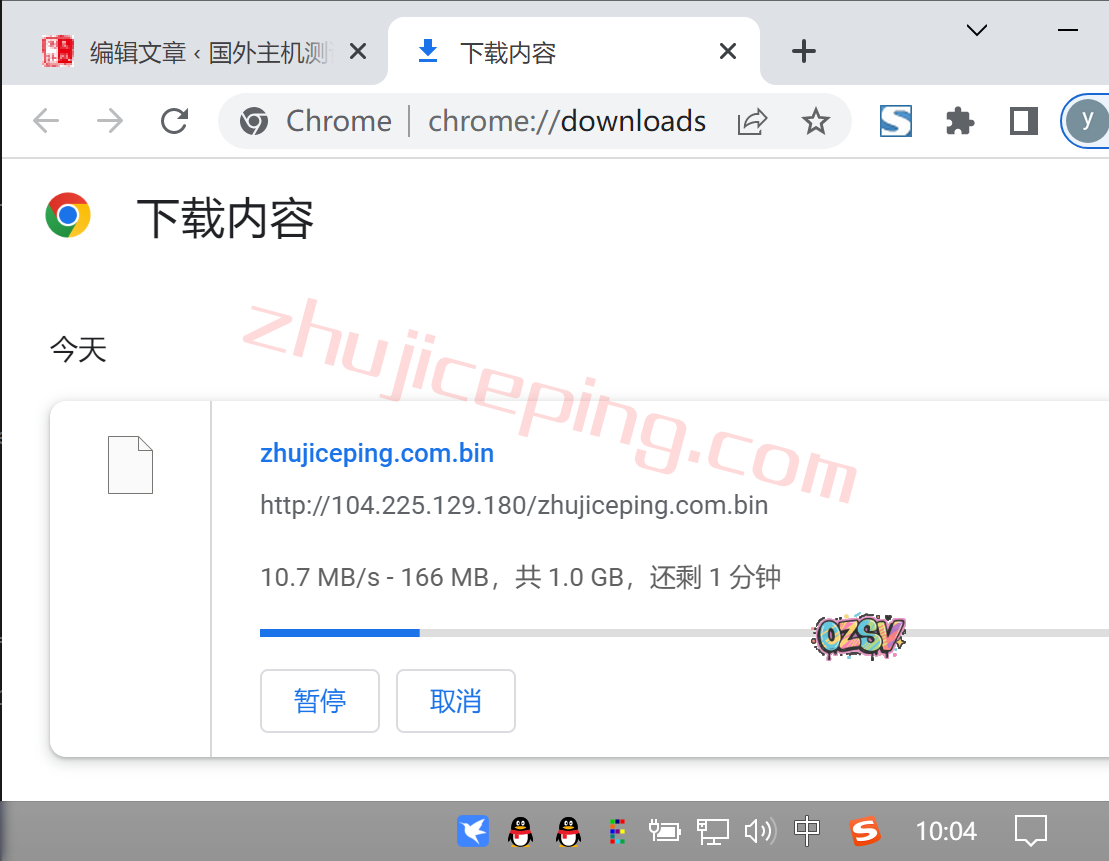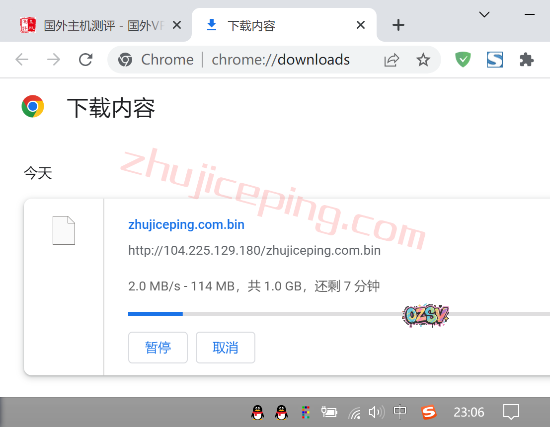 存放在测试小鸡上面的文件,广州电信,直接浏览器下载,看看下载速度: