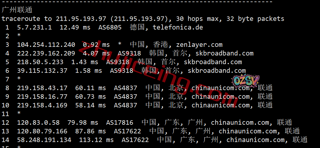 联通去程,骨干网对接NTT去了日本然后回韩国: