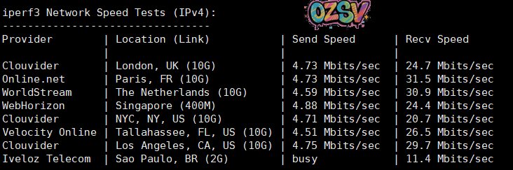 iperf3针对欧美的节点,这5M带宽,欧美跑的也不错。