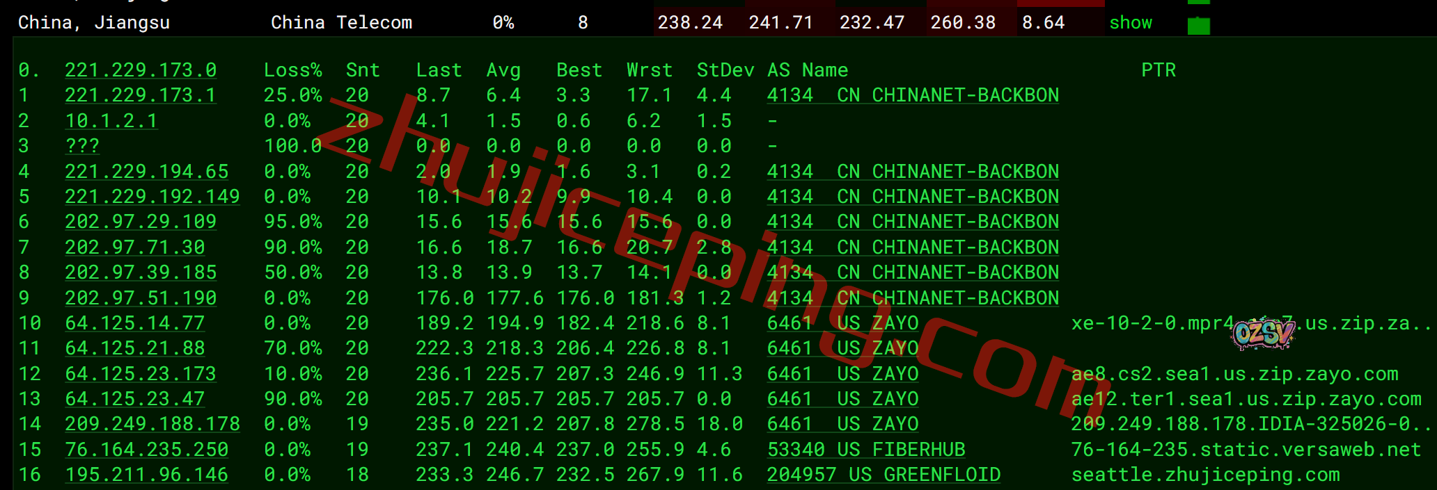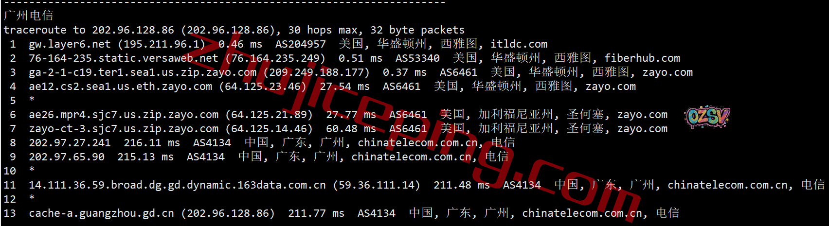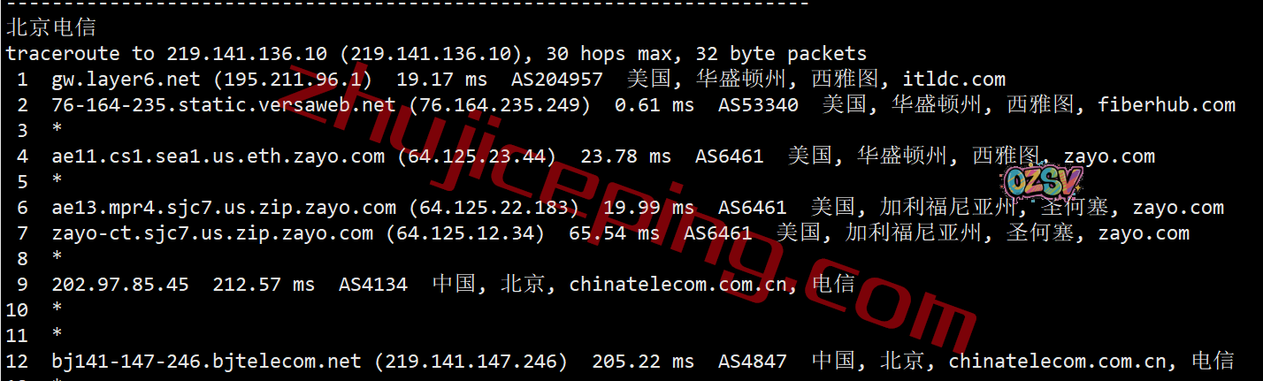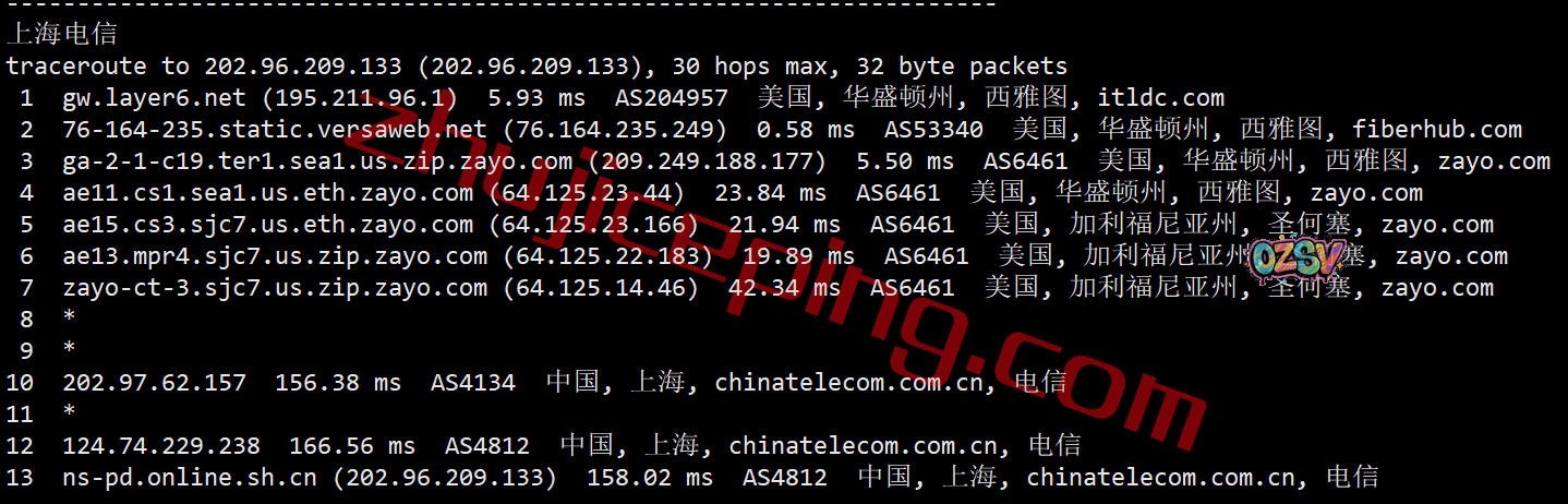 电信去程:骨干网直连西海岸节点后转zayo去西雅图