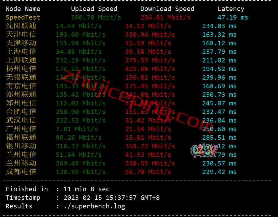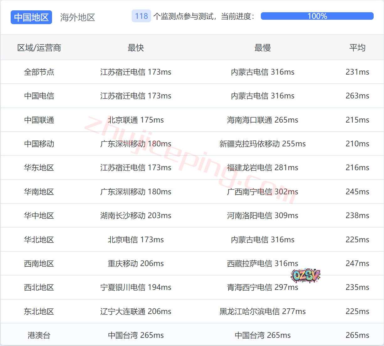 国内三网多节点延迟测试数据: