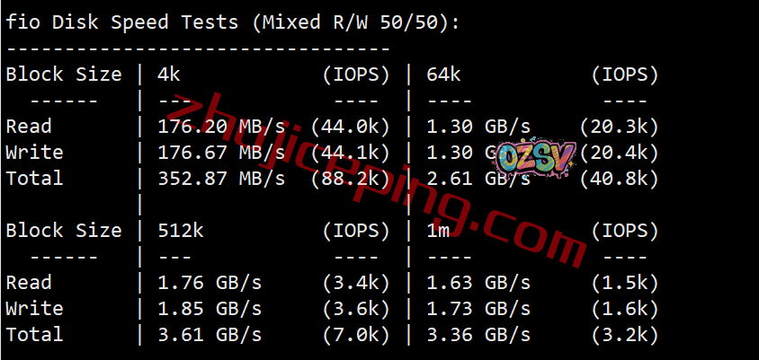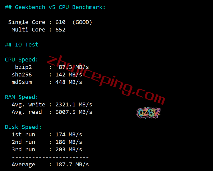 VPS性能测试,部分参数结果: