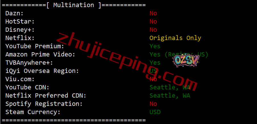 部分跨区域流媒体解锁测试: