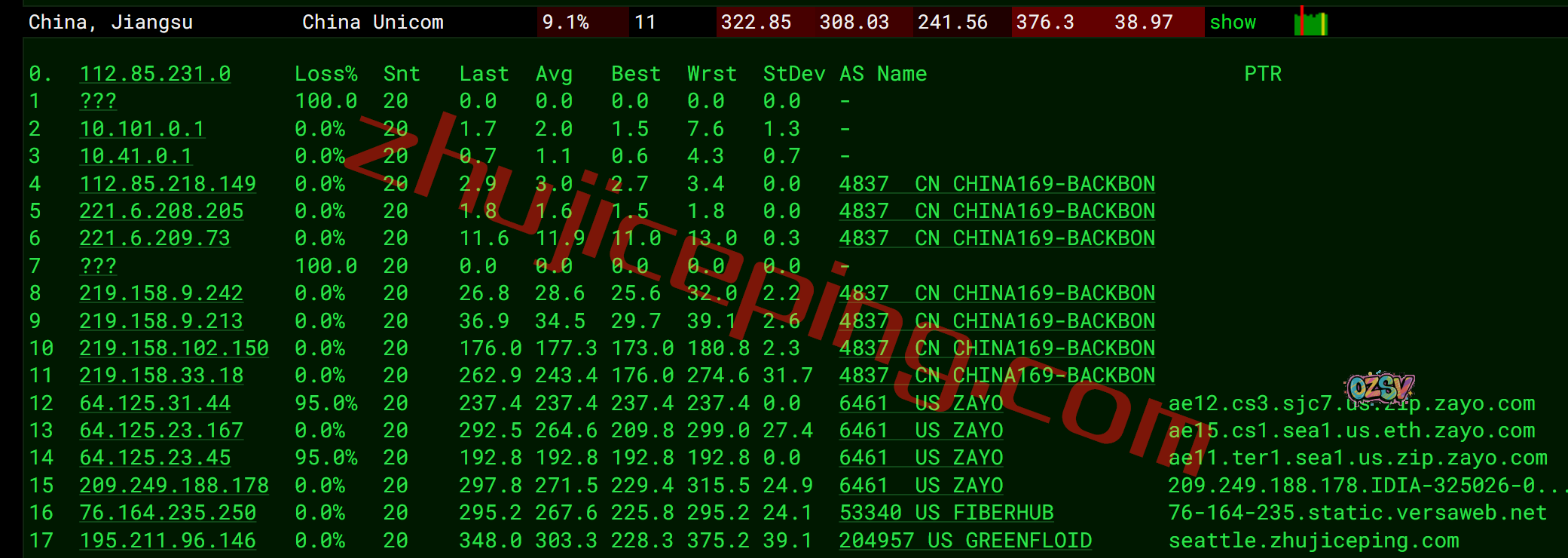 联通回程:走zayo到圣何塞,从联通圣何塞节点直连回国
