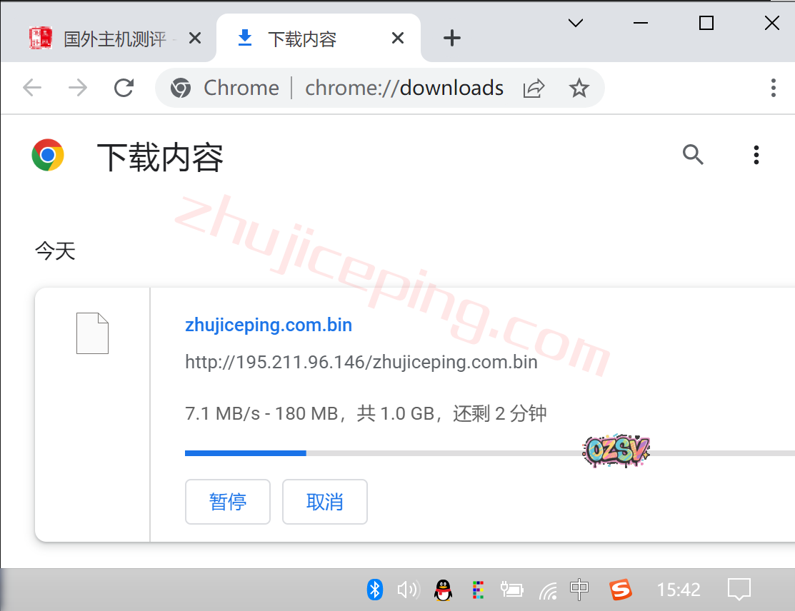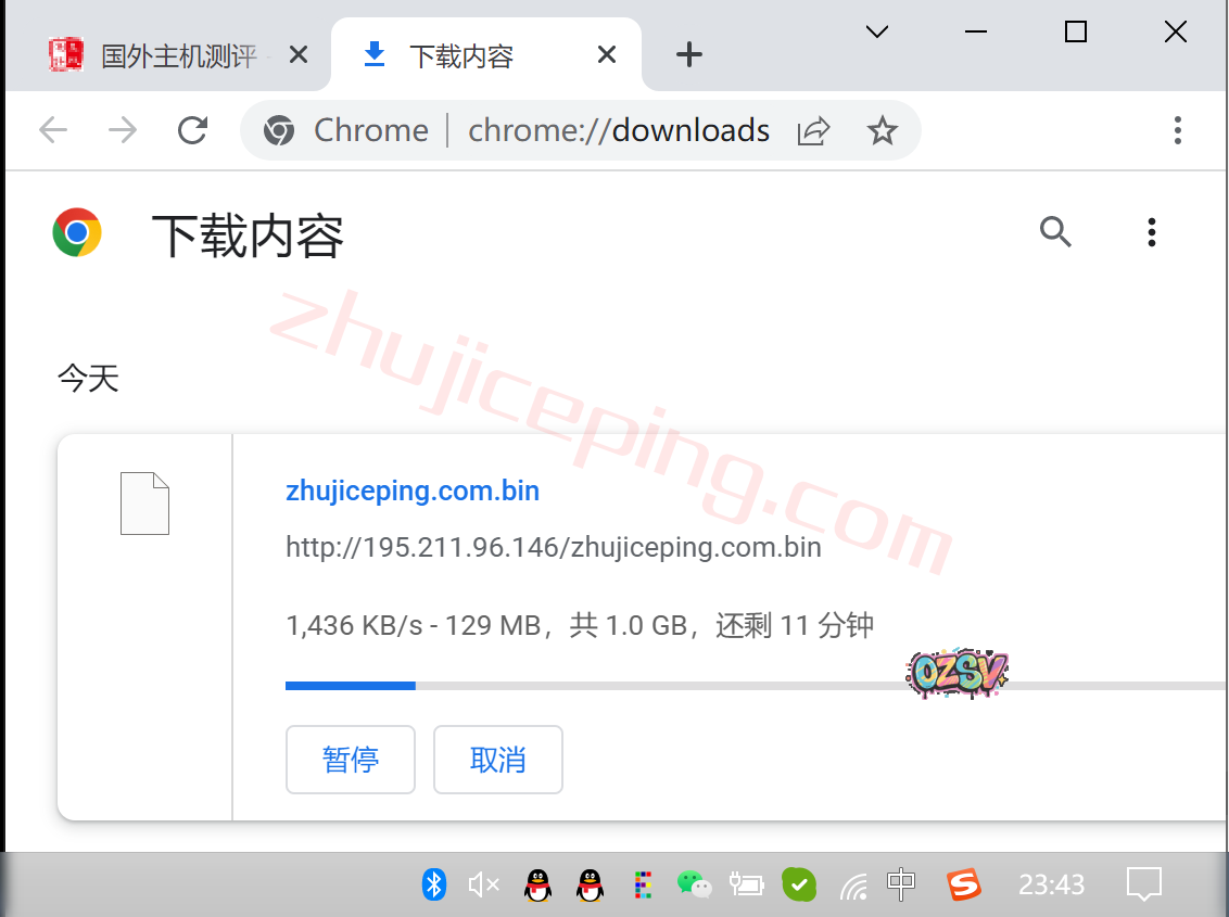 存放在测试小鸡上面的文件,广州电信家庭带宽直接浏览器下载,看看速度: