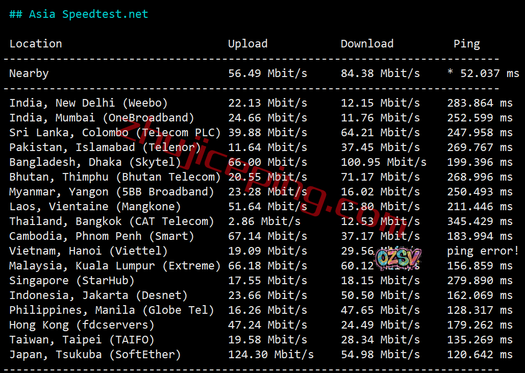 speedtest的亚洲区内的节点,大致随意看看吧: