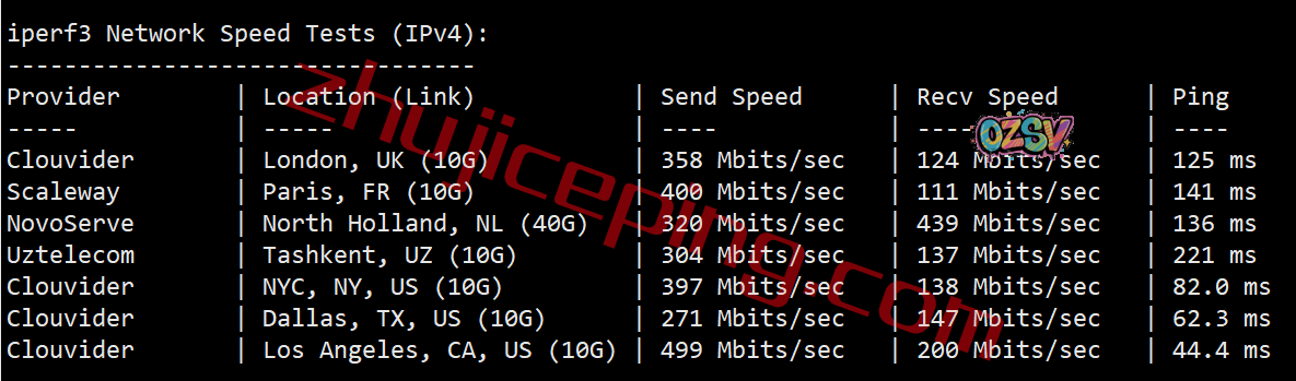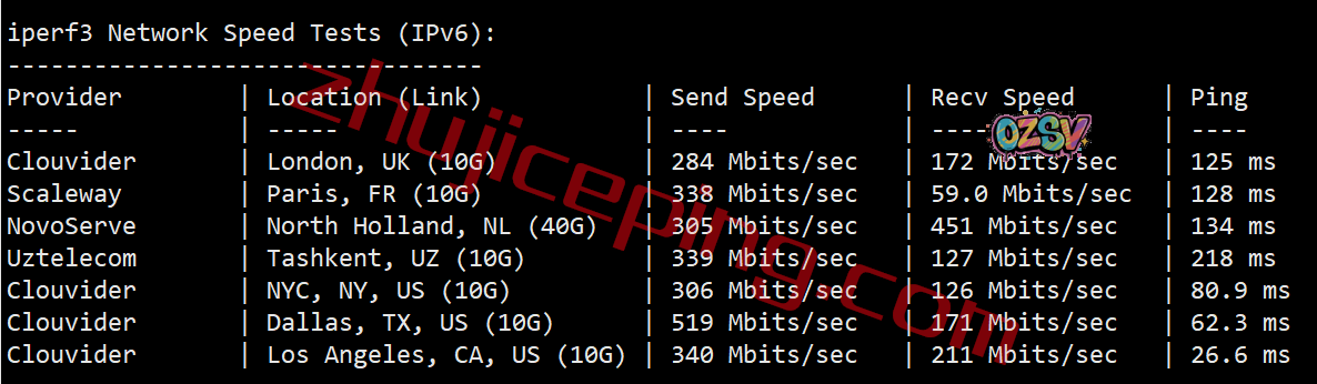 iperf3测试欧美节点,只不过是在IPv6环境下: