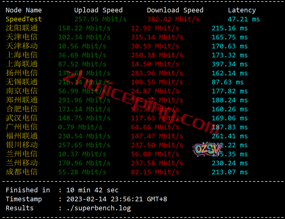 在国内用speedtest.net的国内三网节点跑一圈,看看最高上下行能冲到多少吧?大致如下: