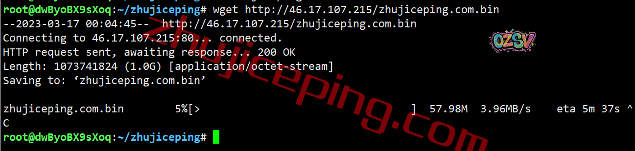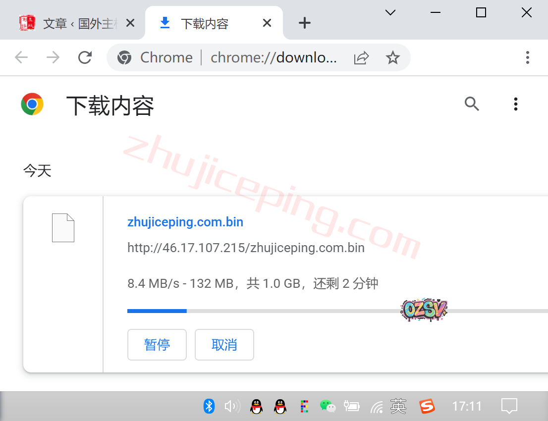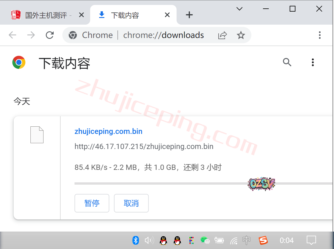 存放在测试小鸡上面的文件,广州电信家庭带宽下载速度如下: