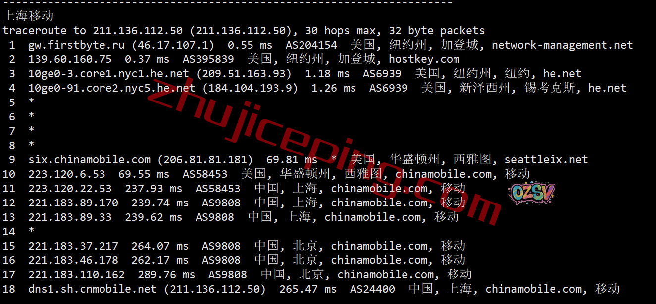 上海方向:走HE到西雅图,从移动西雅图节点直连回国
