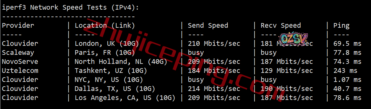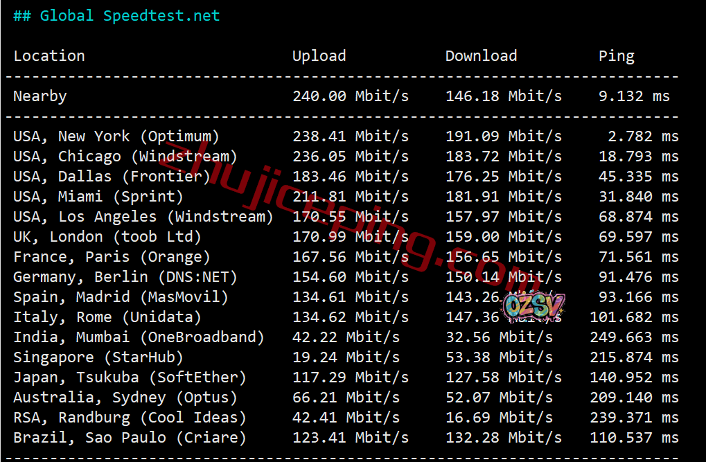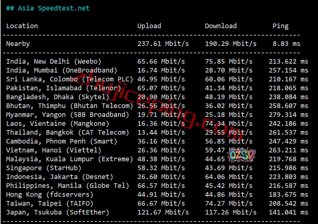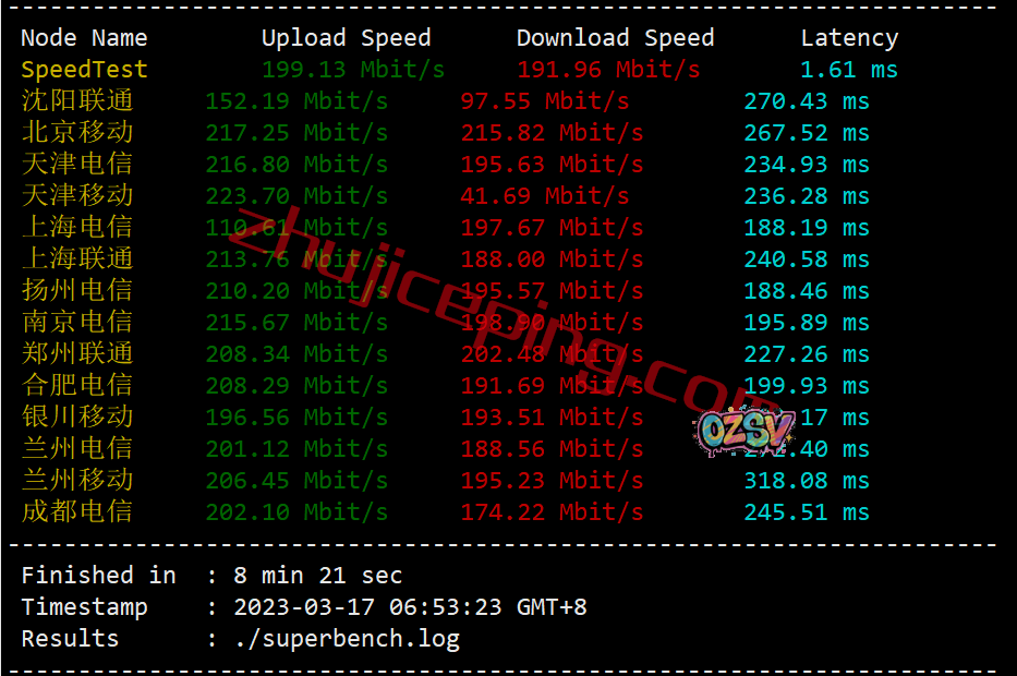 我们来跑一下,看看VPS在国内能冲到多少的上下行带宽吧,节点为speedtest.net在国内的三网节点: