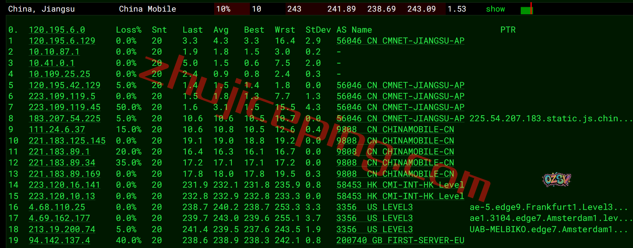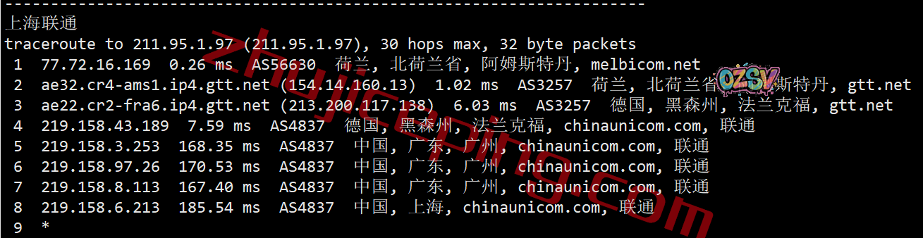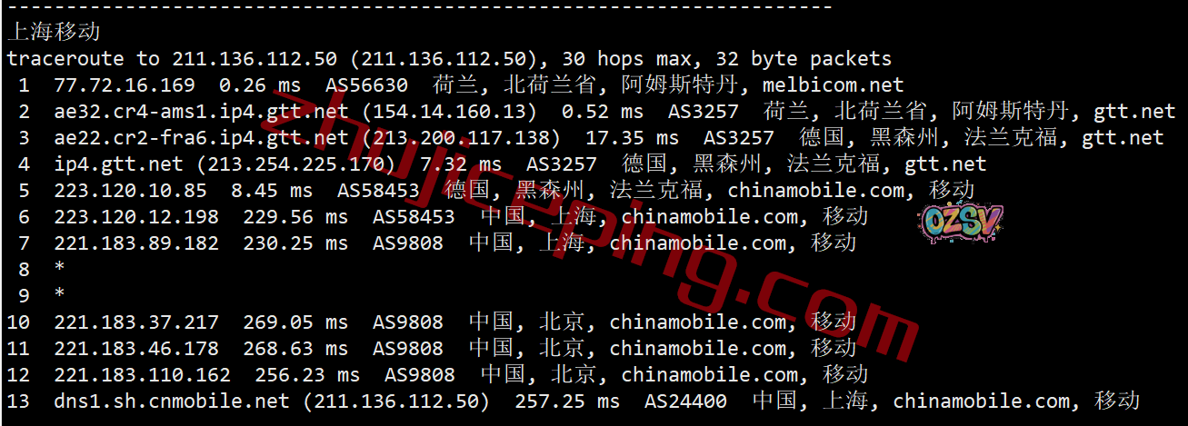 上海:走GTT到德国,从移动法兰克福节点直连回国