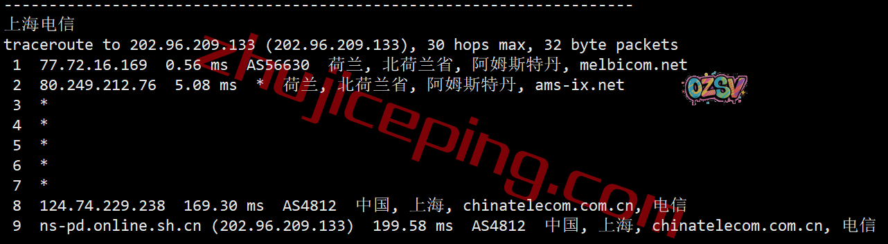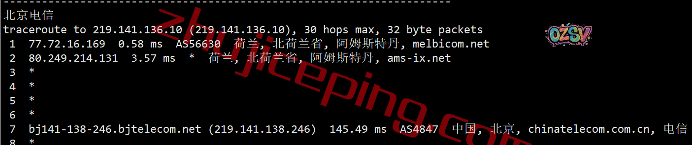 电信回程:从荷兰阿姆斯特丹ams-ix数据交换中心出来直连国内