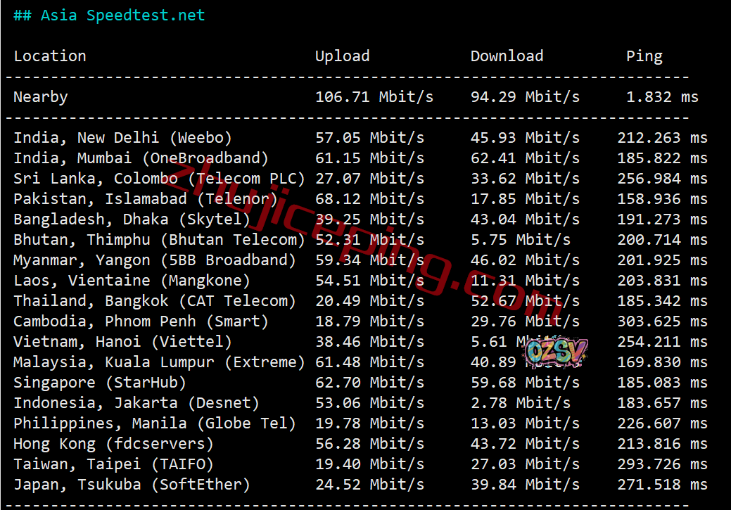 speedtest的亚洲区域内的节点(不包括中国内地的):