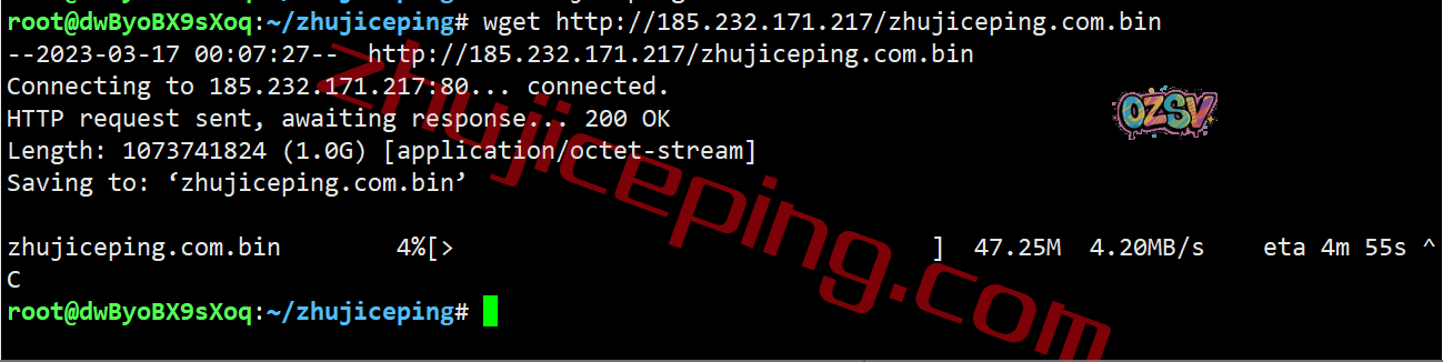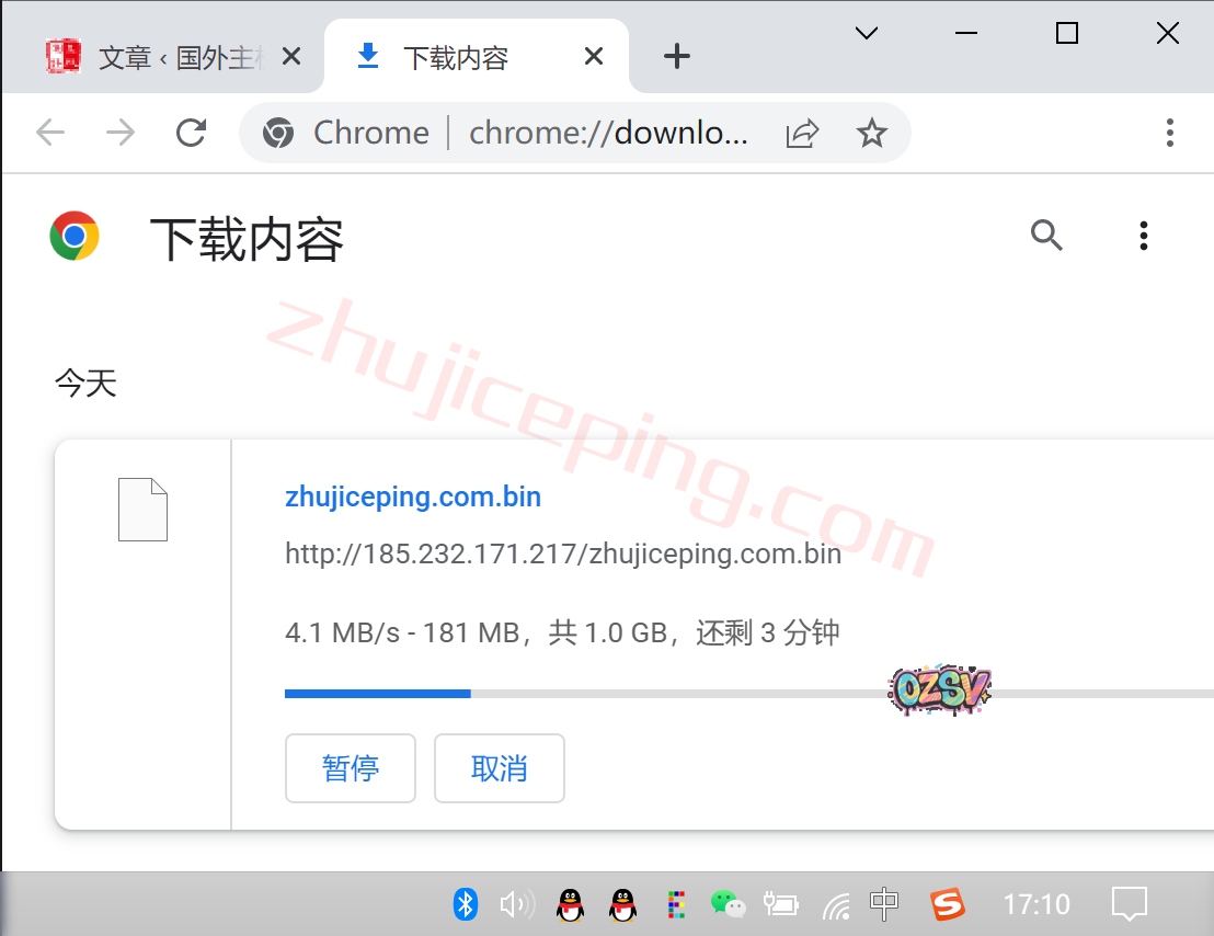 存放在测试小鸡上面的文件,广州电信家庭带宽的下载速度: