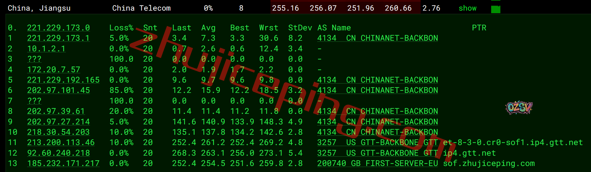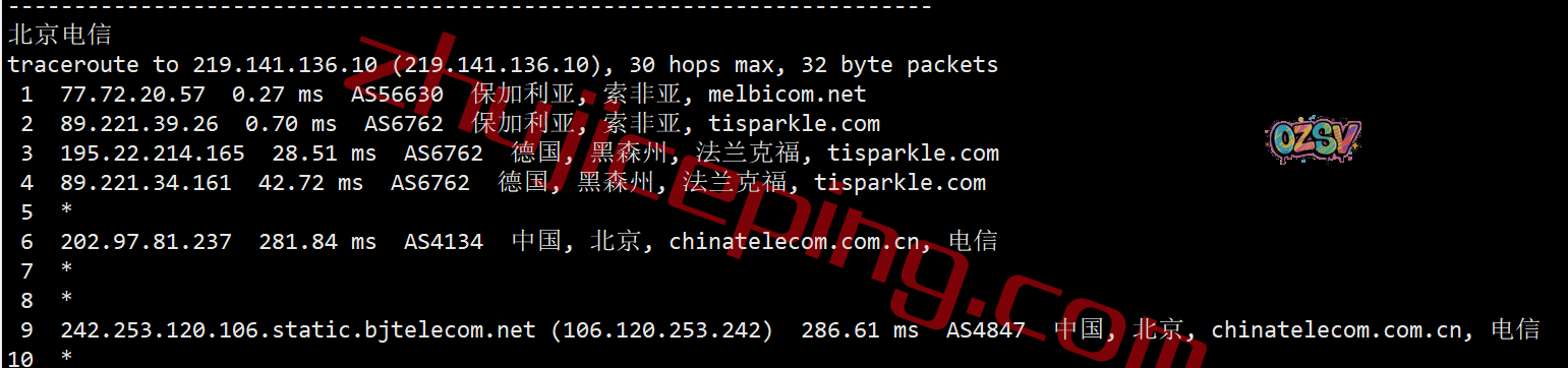 电信去程:直连电信圣何塞节点然后走GTT去保加利亚